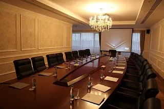 Комната выполнена в современном стиле, в бежевых тонах, с удобными мягкими креслами - все это имеет огромное значение для проведения переговоров на международном уровне. Установлен видеопроектор, флипчарт и система звукоусиления. Wi-Fi, Ethernet. Переговорная №5 – оптимальный вариант для проведения: деловых встреч, тренингов, семинаров, презентаций и прочих мероприятий.