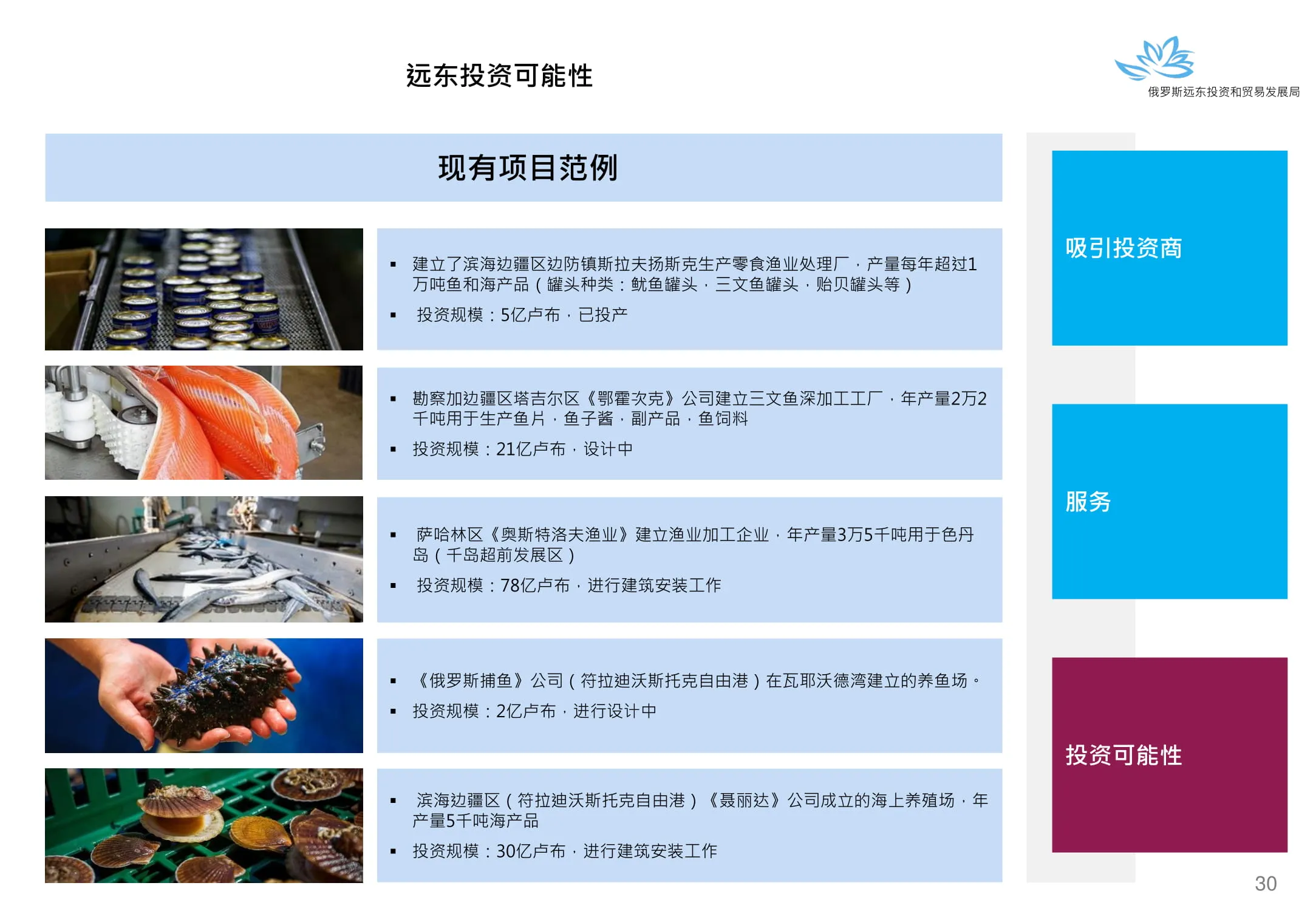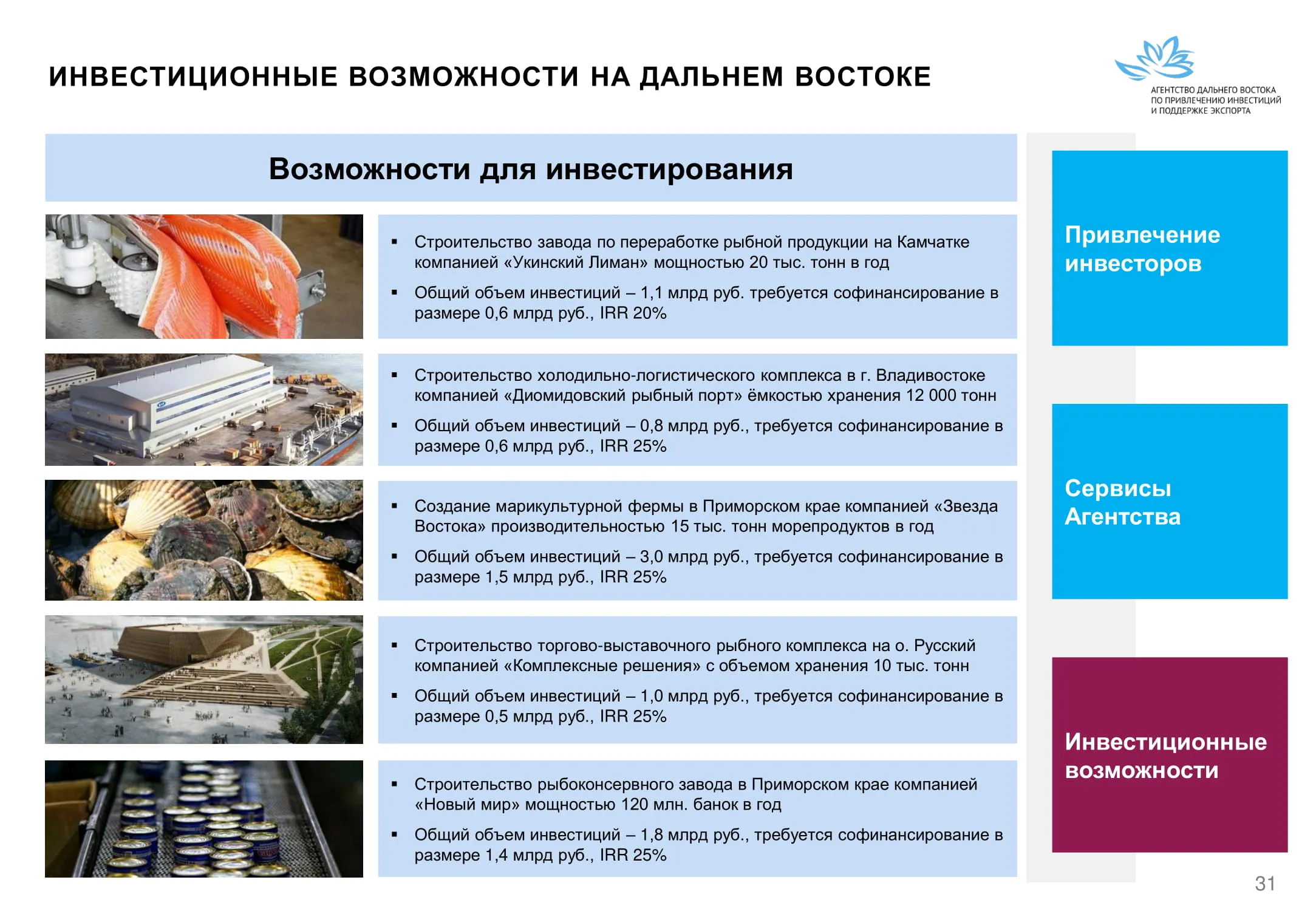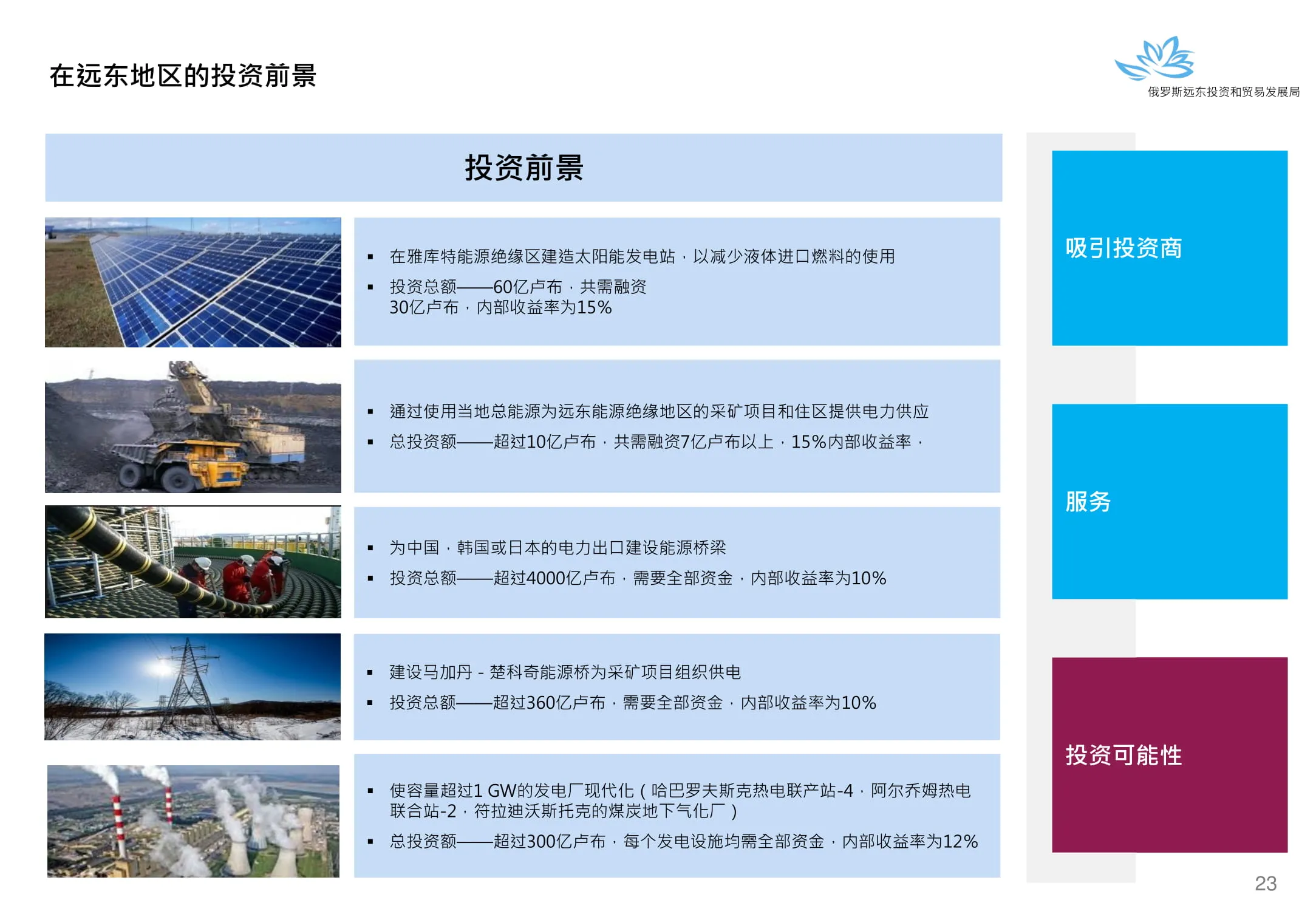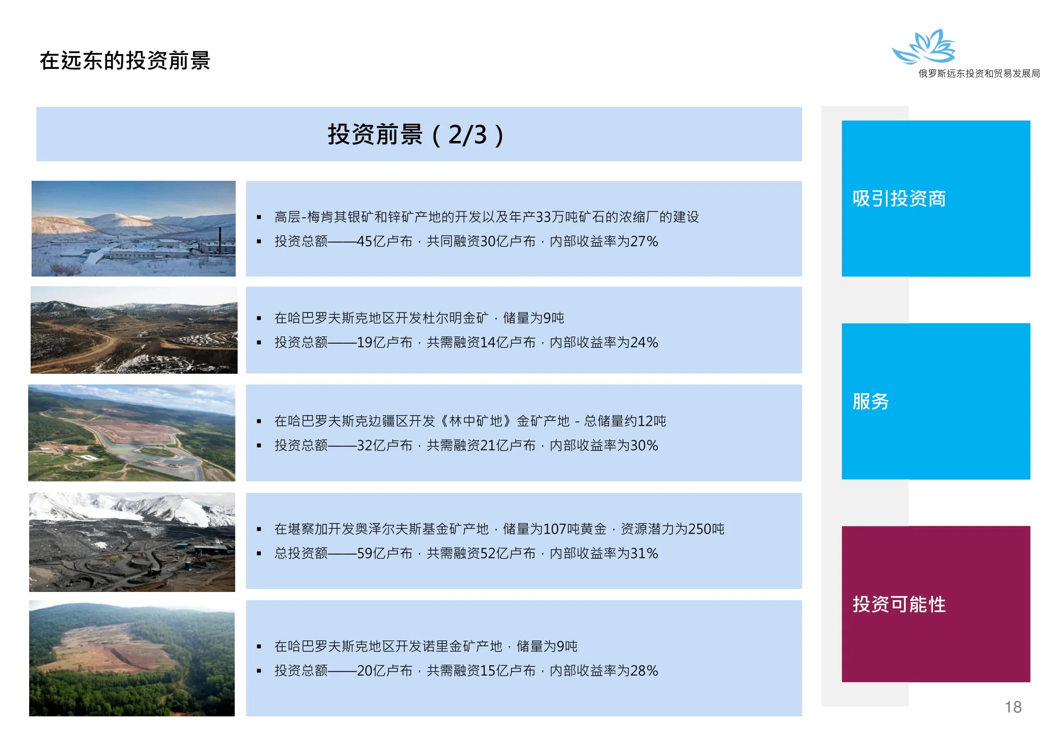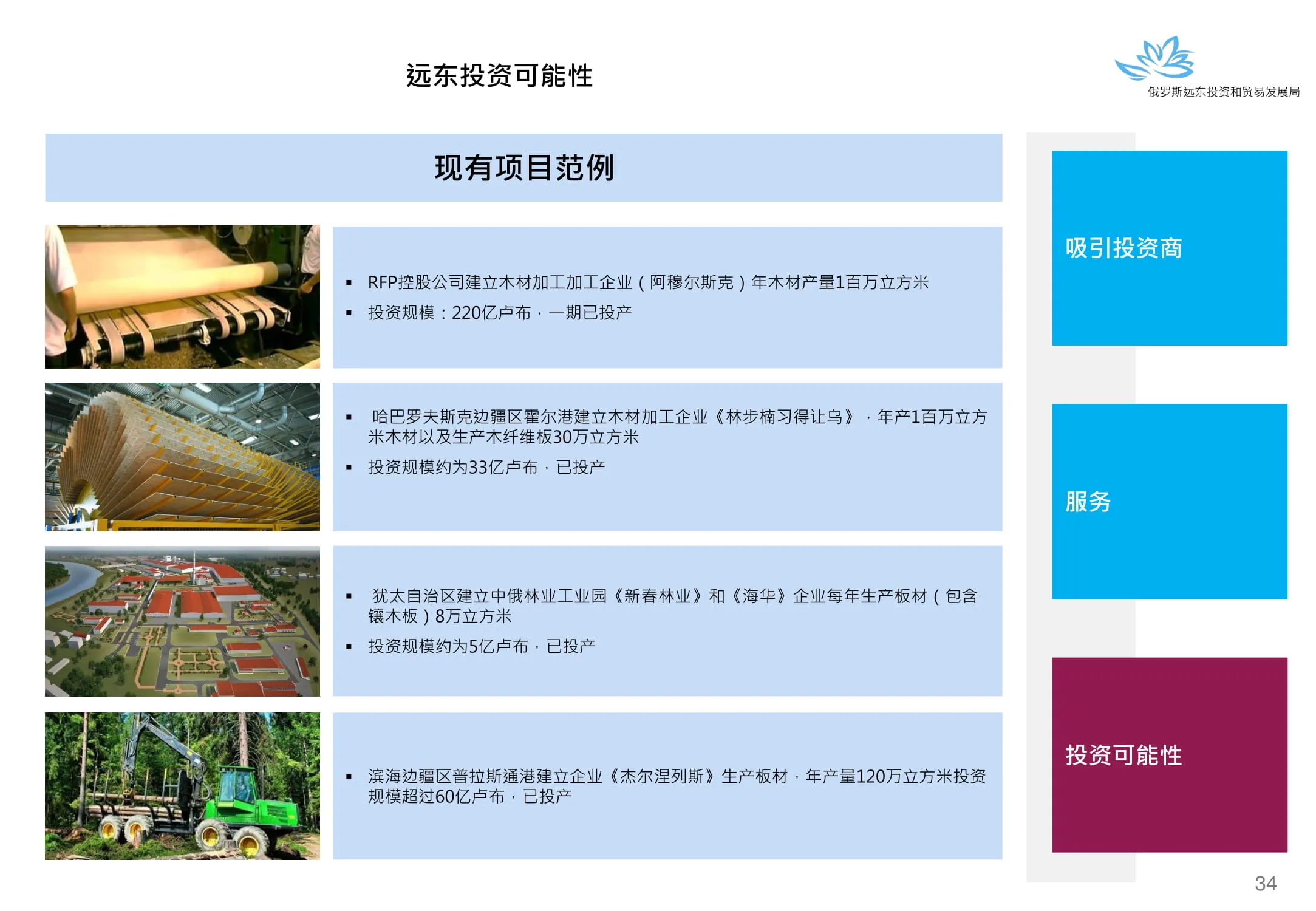 Инвестиции в России Инвестиционный потенциал MO (кит.) Государственное финансирование и инвестиции в сельское хозяйство Подмосковья (кит.) Инвестиционные возможности на Дальнем Востоке (рус.) Инвестиционные возможности на Дальнем Востоке (анг.) Инвестиционные возможности на Дальнем Востоке (кит.)