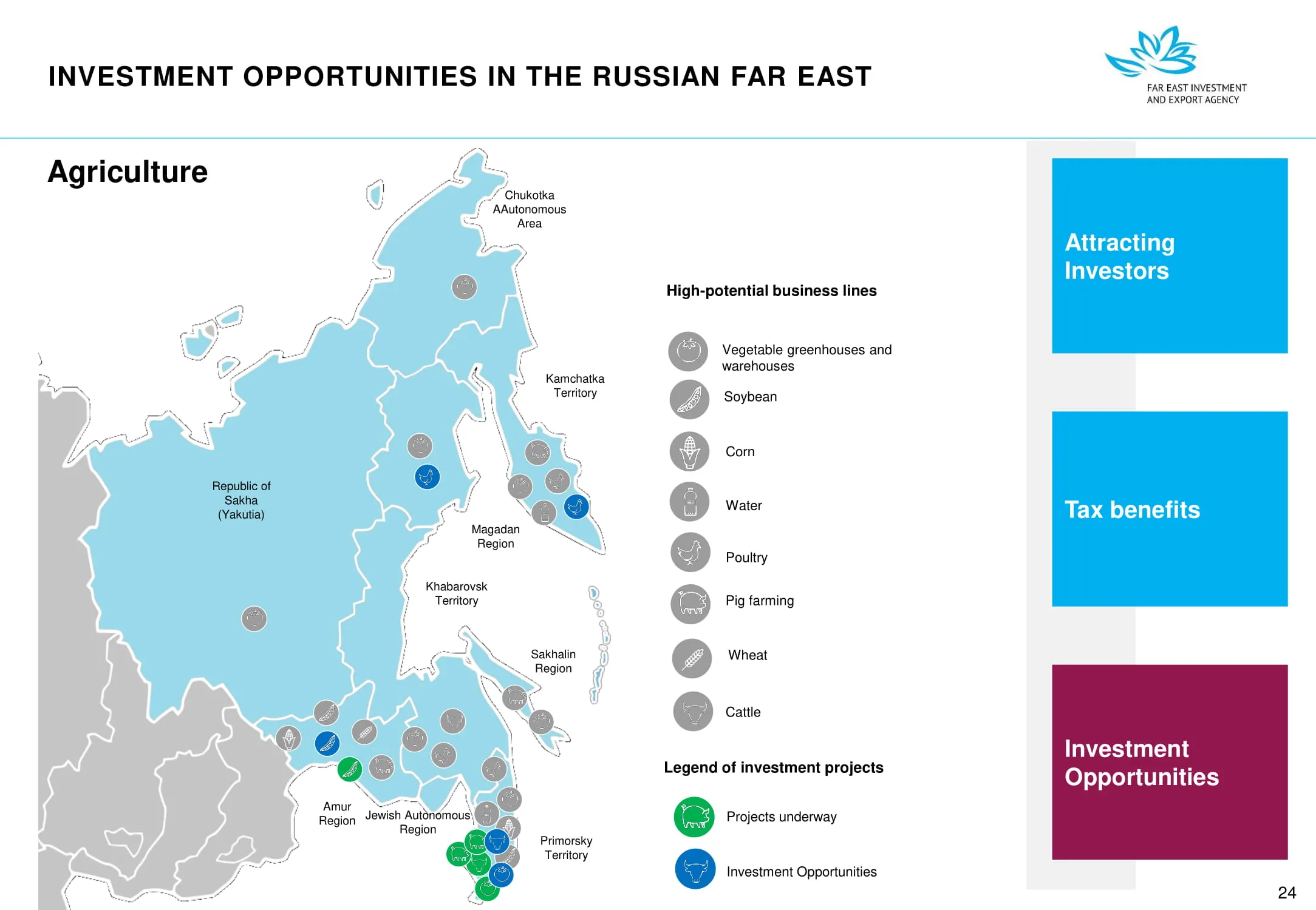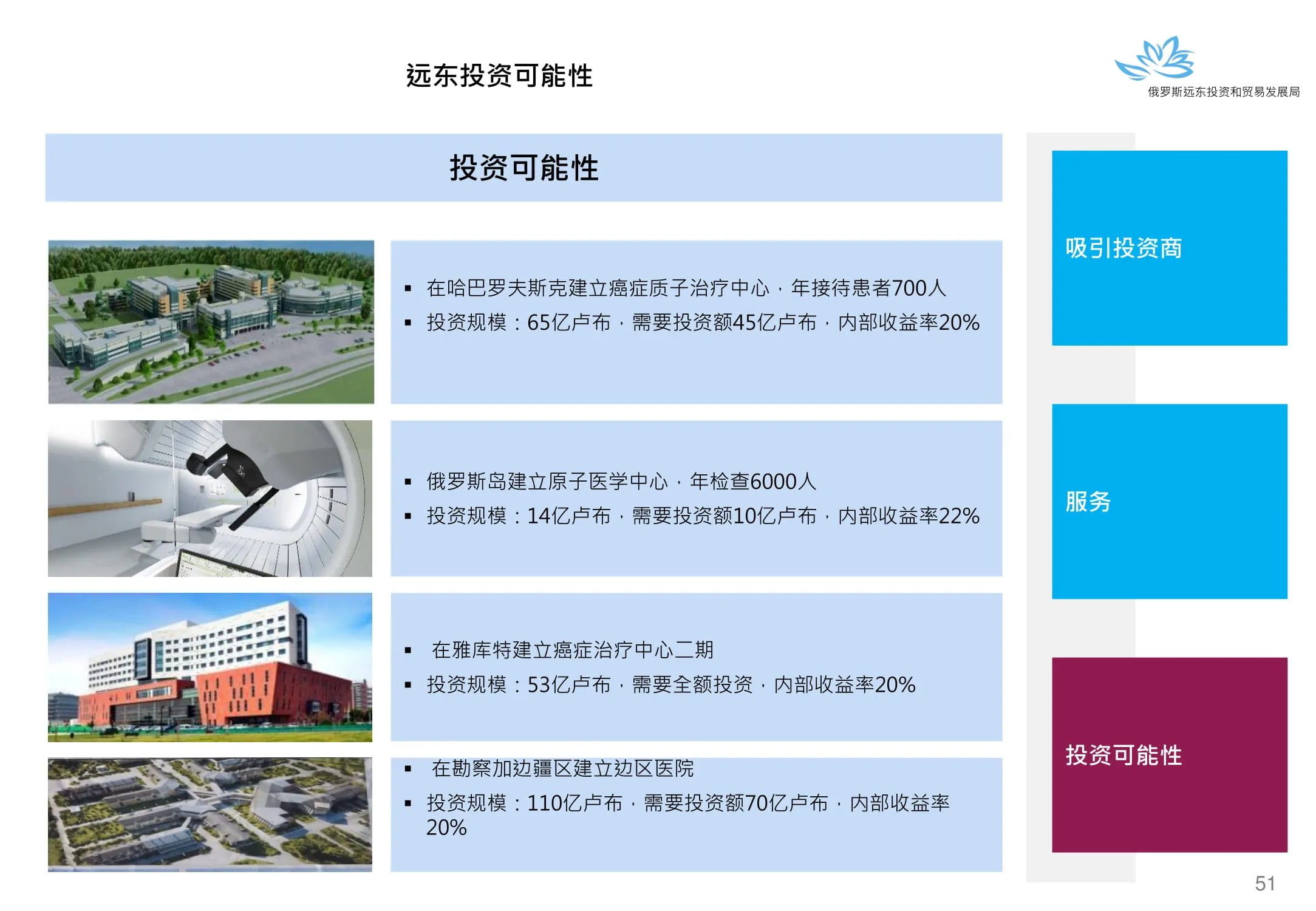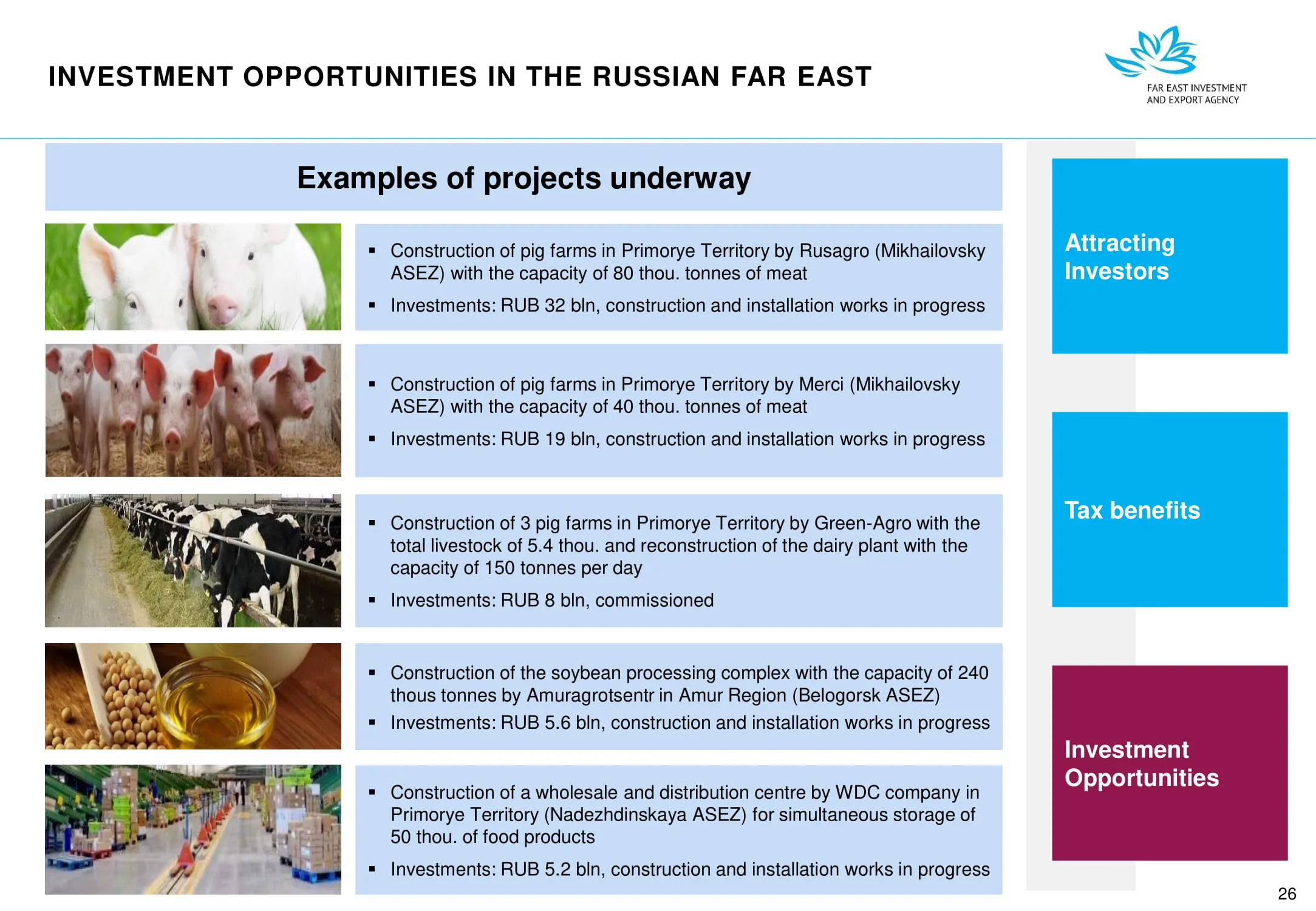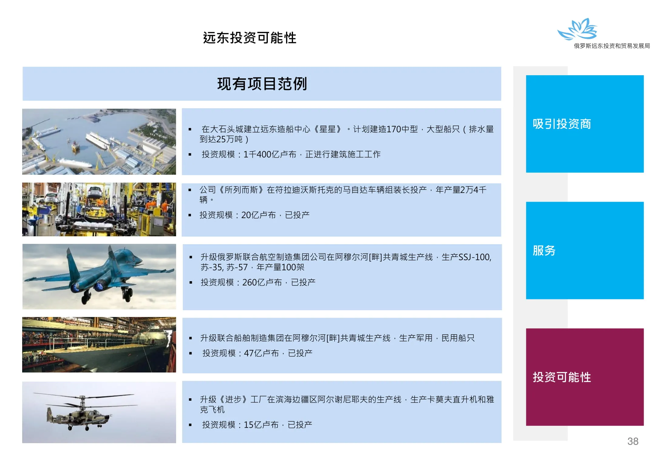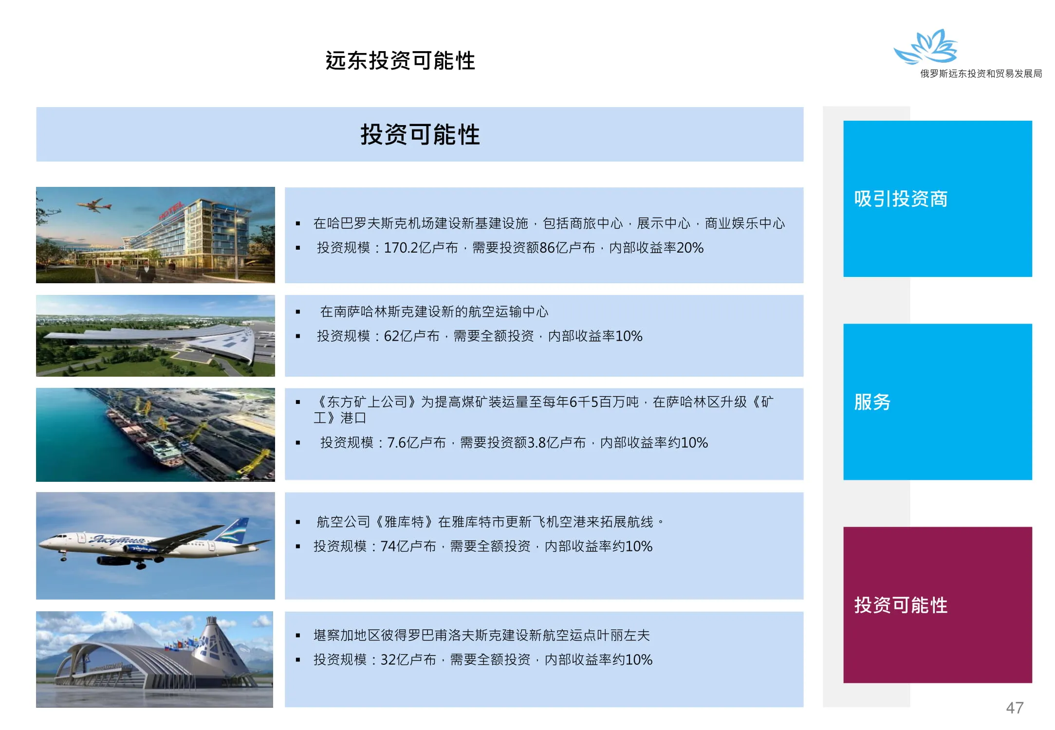 Инвестиции в России Инвестиционный потенциал MO (кит.) Государственное финансирование и инвестиции в сельское хозяйство Подмосковья (кит.) Инвестиционные возможности на Дальнем Востоке (рус.) Инвестиционные возможности на Дальнем Востоке (анг.) Инвестиционные возможности на Дальнем Востоке (кит.)