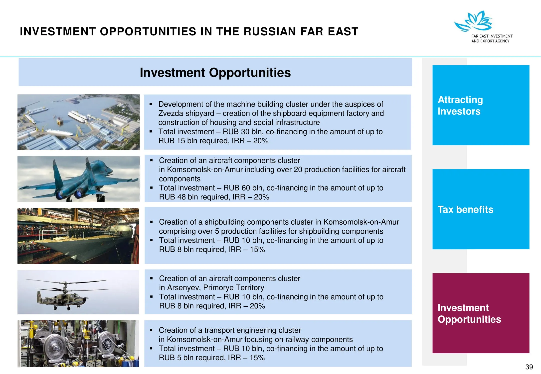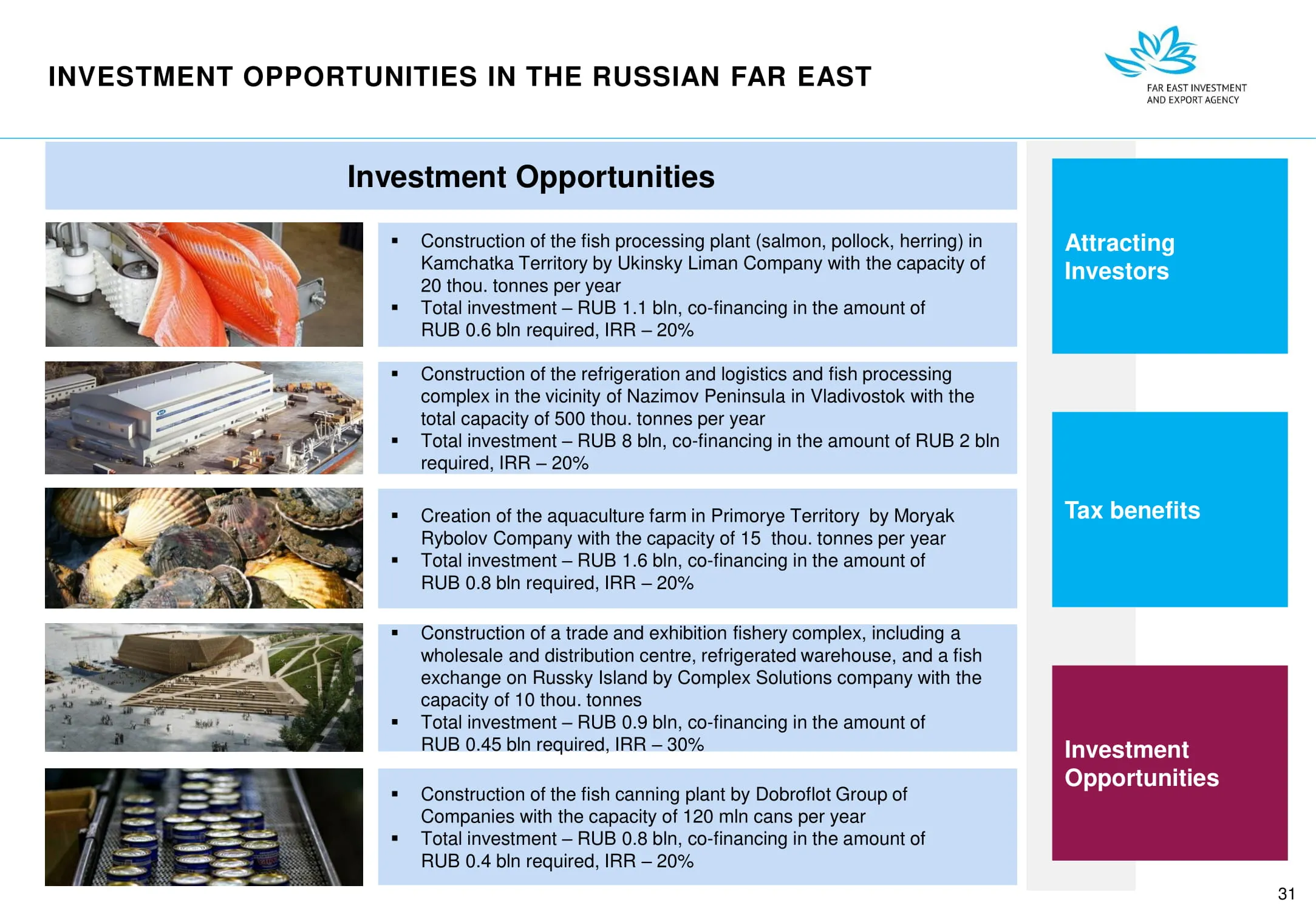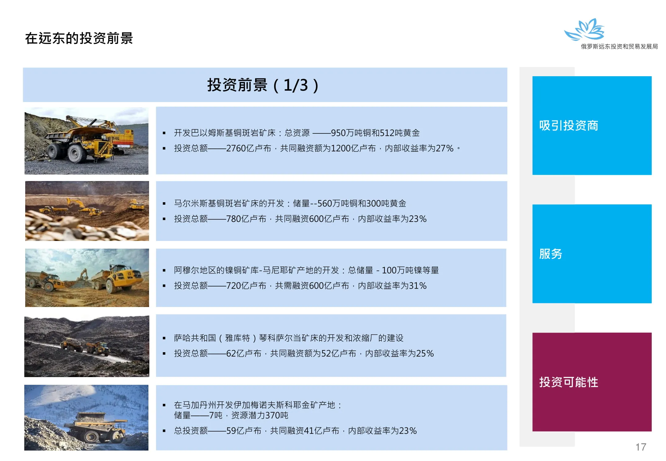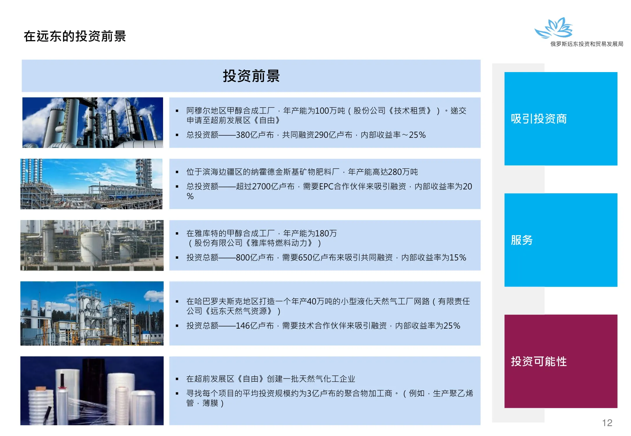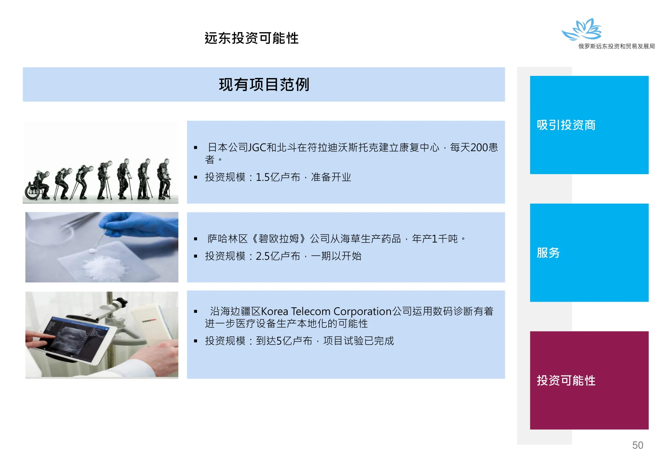 Инвестиции в России Инвестиционный потенциал MO (кит.) Государственное финансирование и инвестиции в сельское хозяйство Подмосковья (кит.) Инвестиционные возможности на Дальнем Востоке (рус.) Инвестиционные возможности на Дальнем Востоке (анг.) Инвестиционные возможности на Дальнем Востоке (кит.)