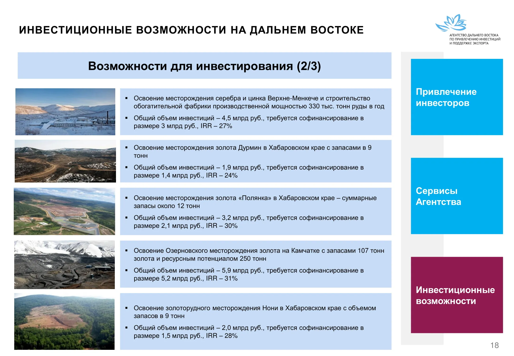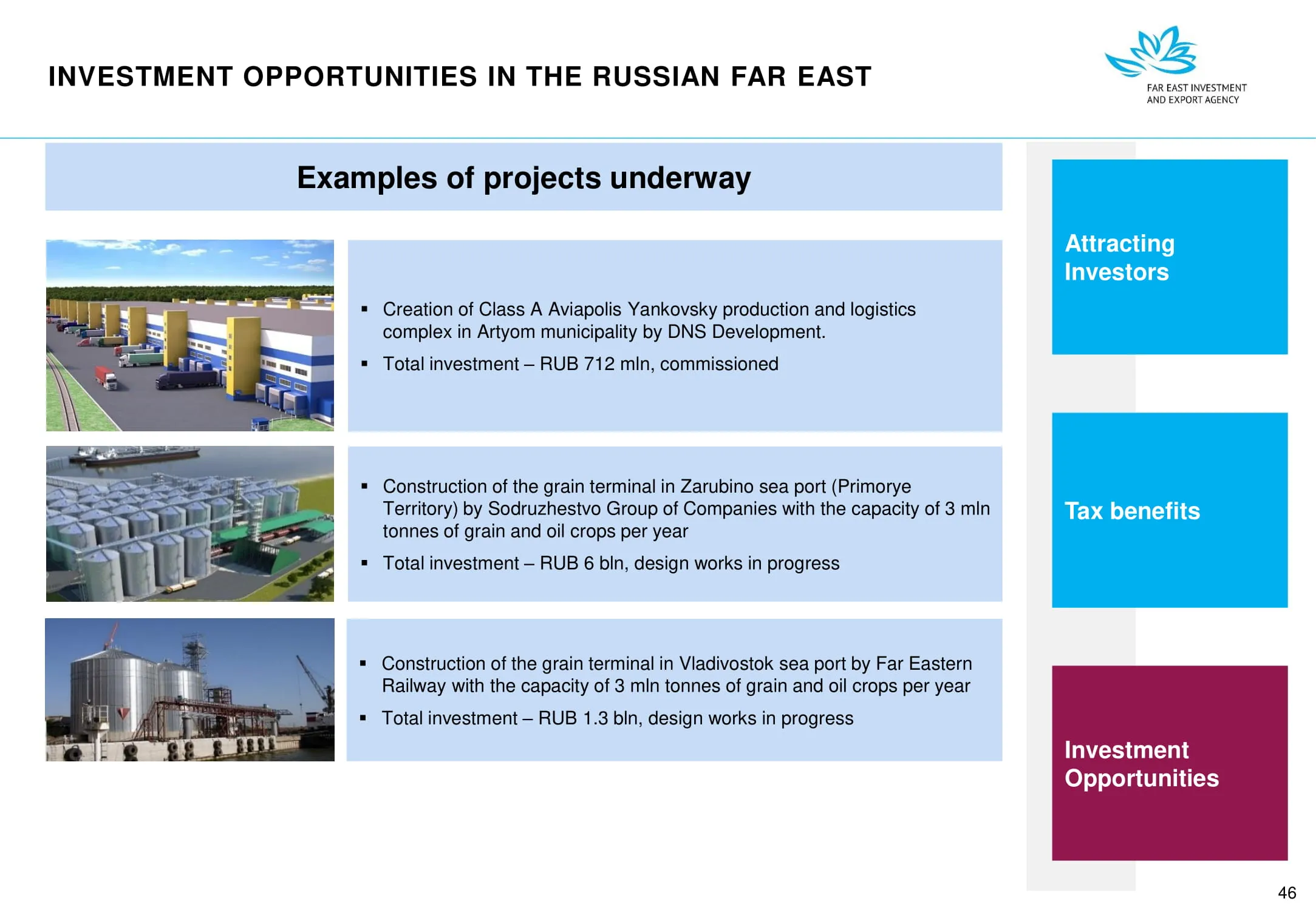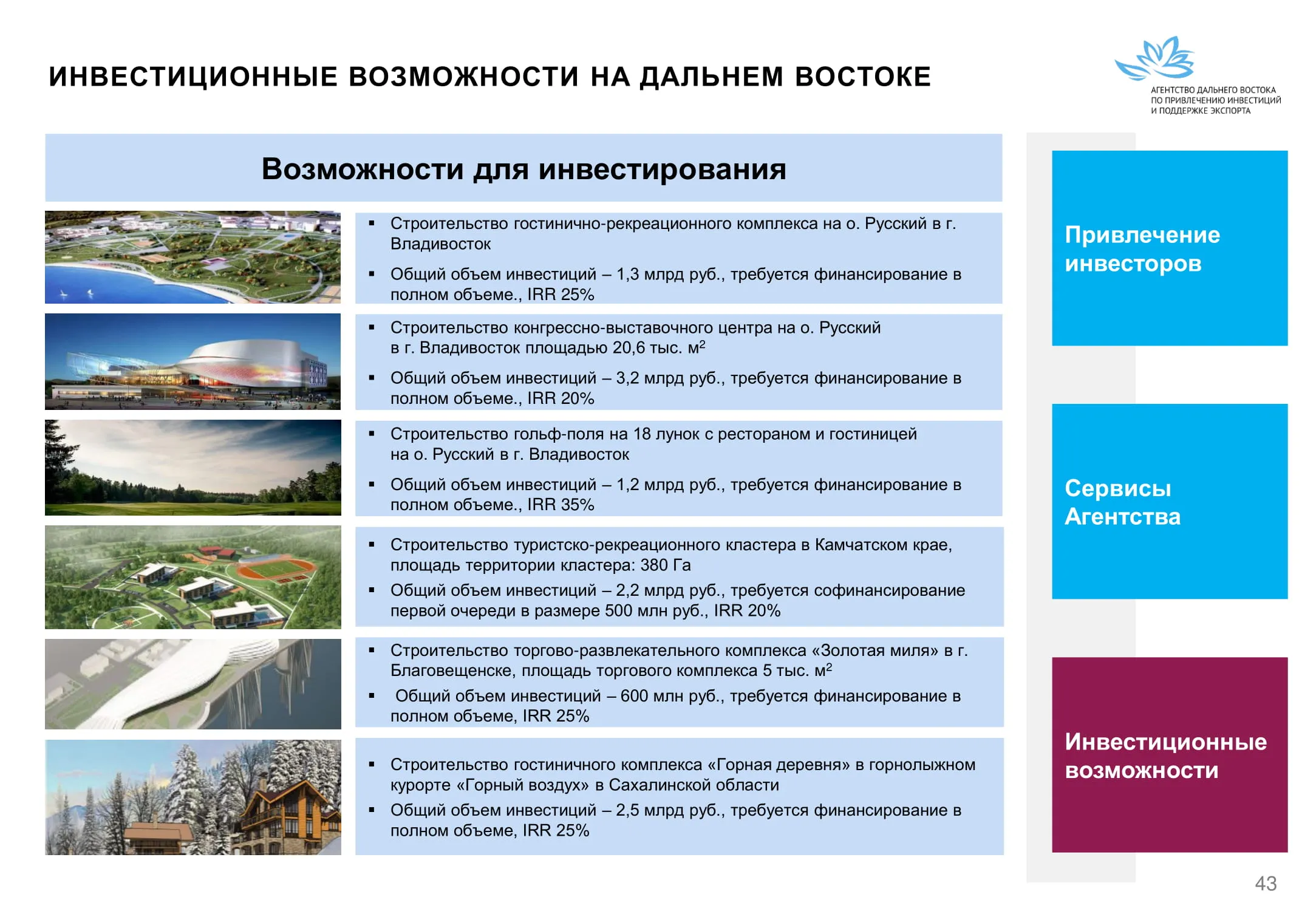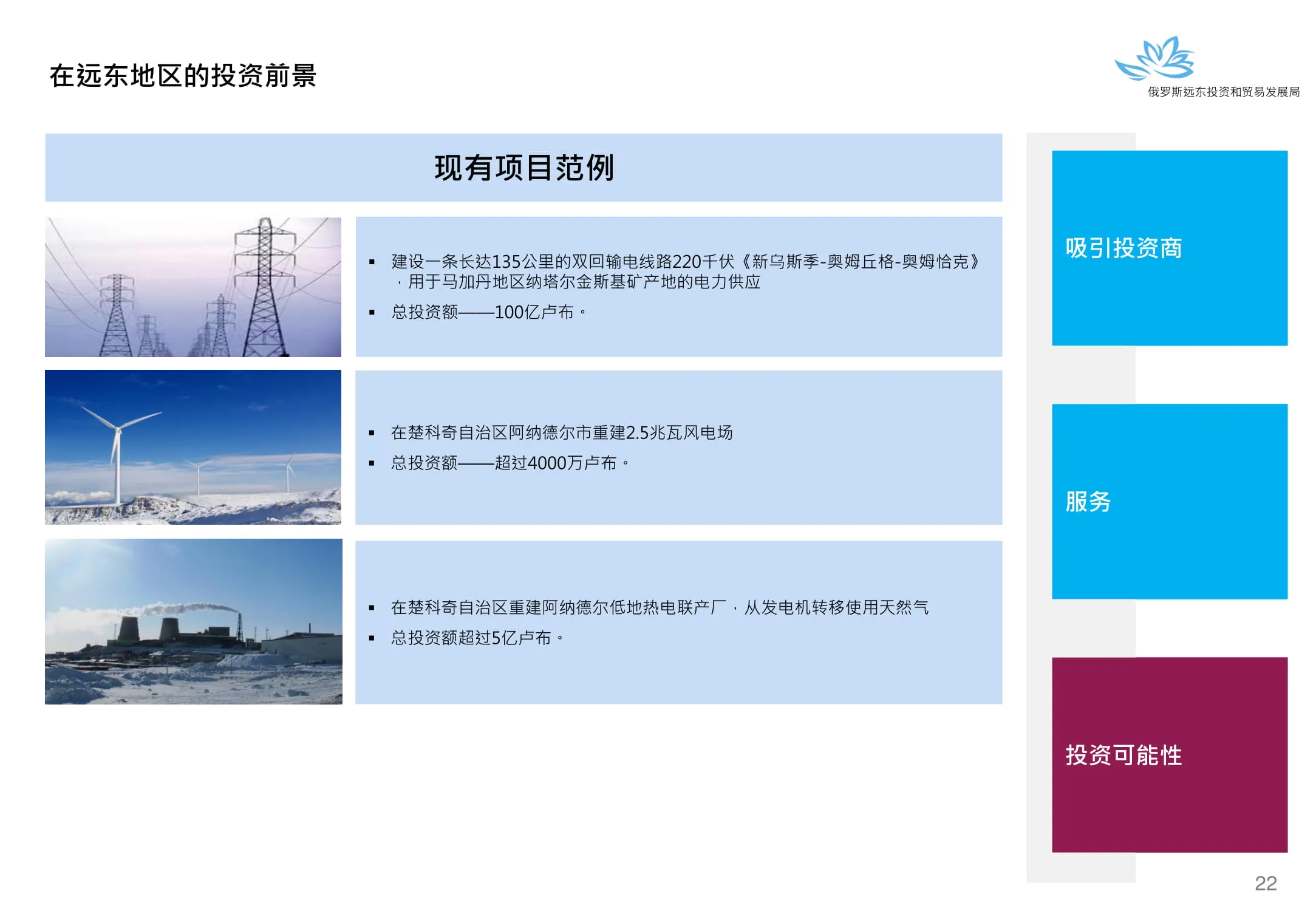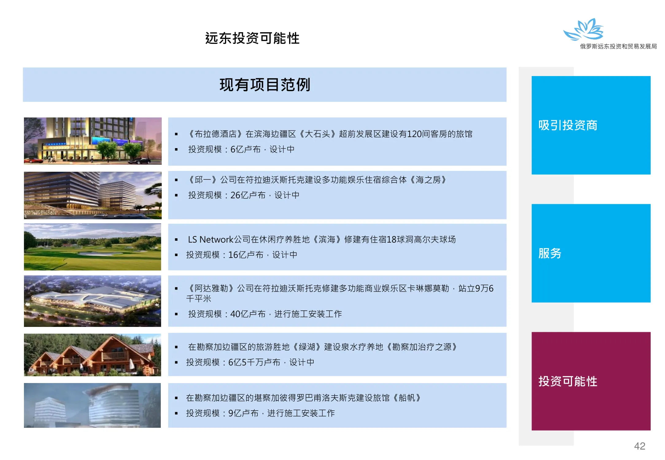 Инвестиции в России Инвестиционный потенциал MO (кит.) Государственное финансирование и инвестиции в сельское хозяйство Подмосковья (кит.) Инвестиционные возможности на Дальнем Востоке (рус.) Инвестиционные возможности на Дальнем Востоке (анг.) Инвестиционные возможности на Дальнем Востоке (кит.)