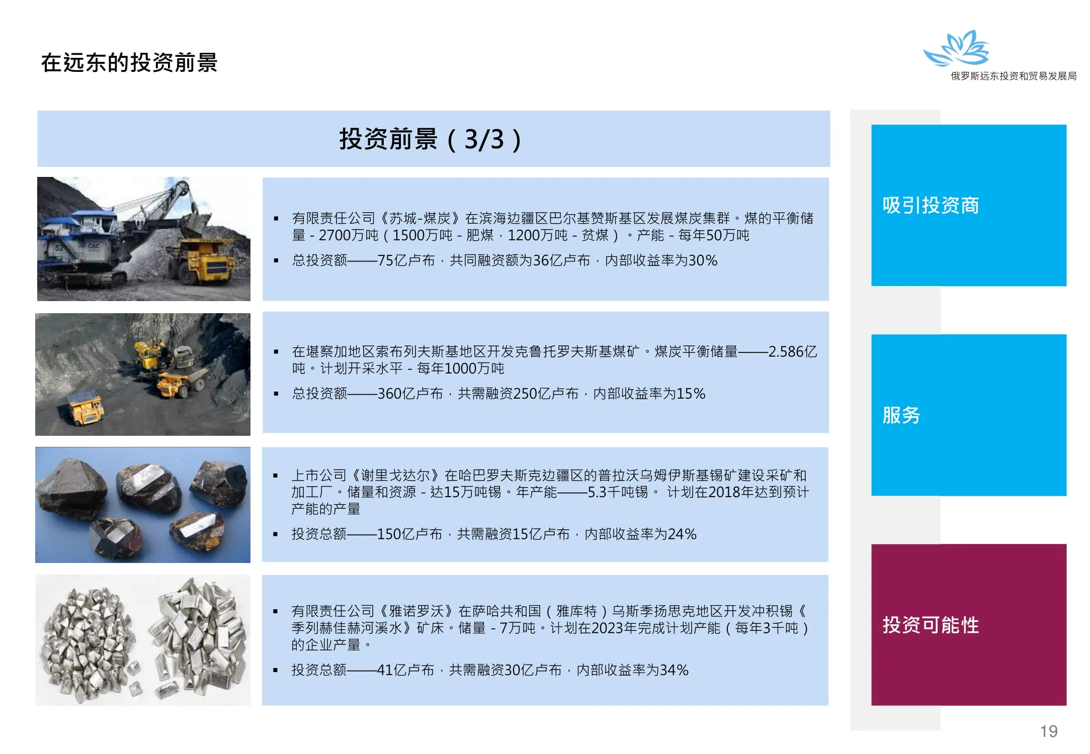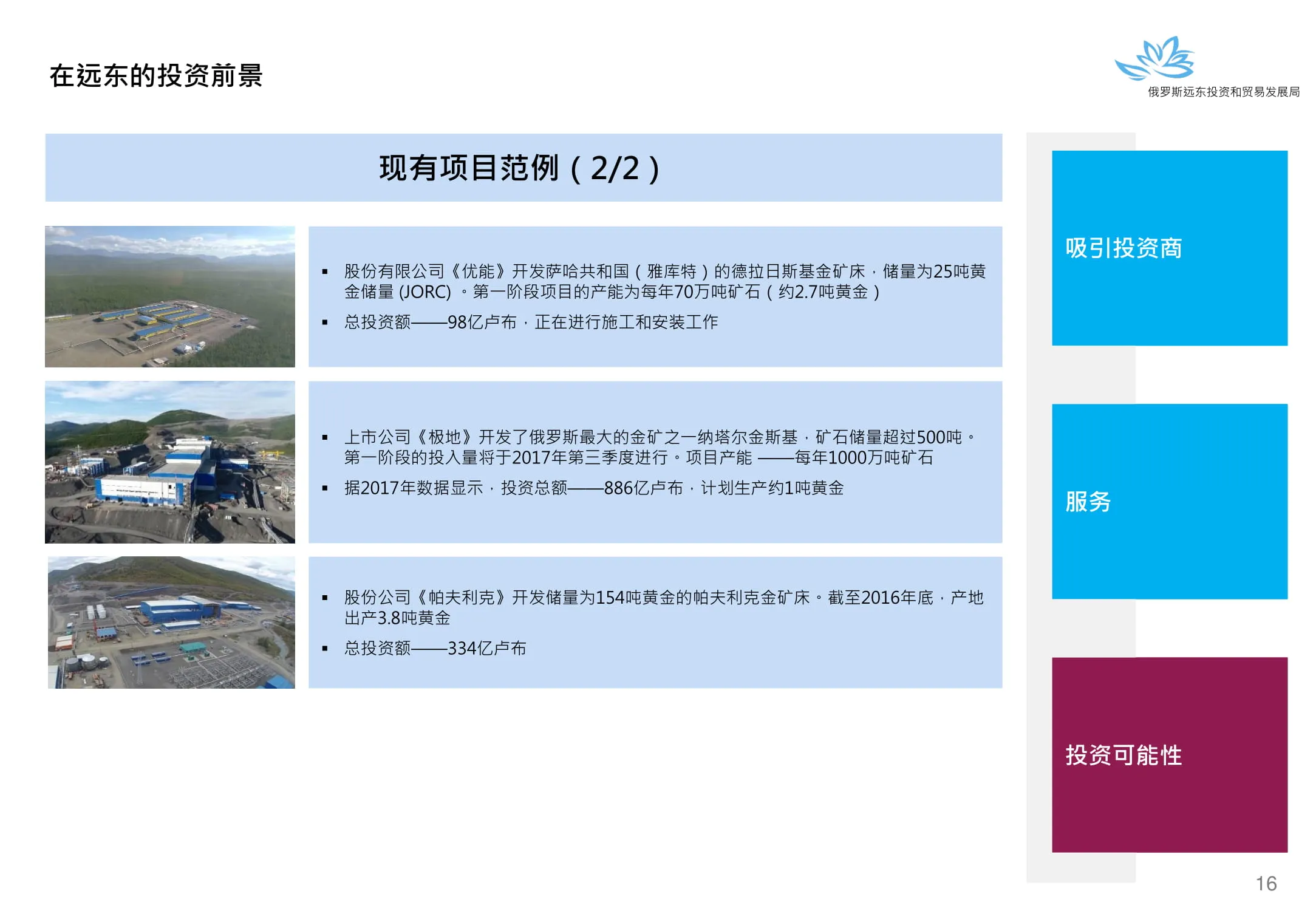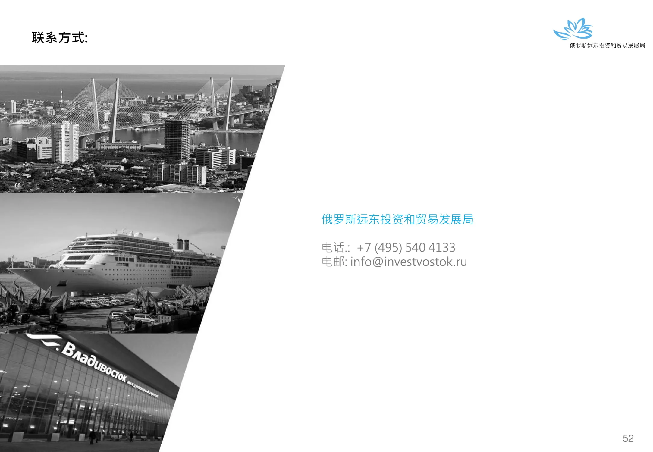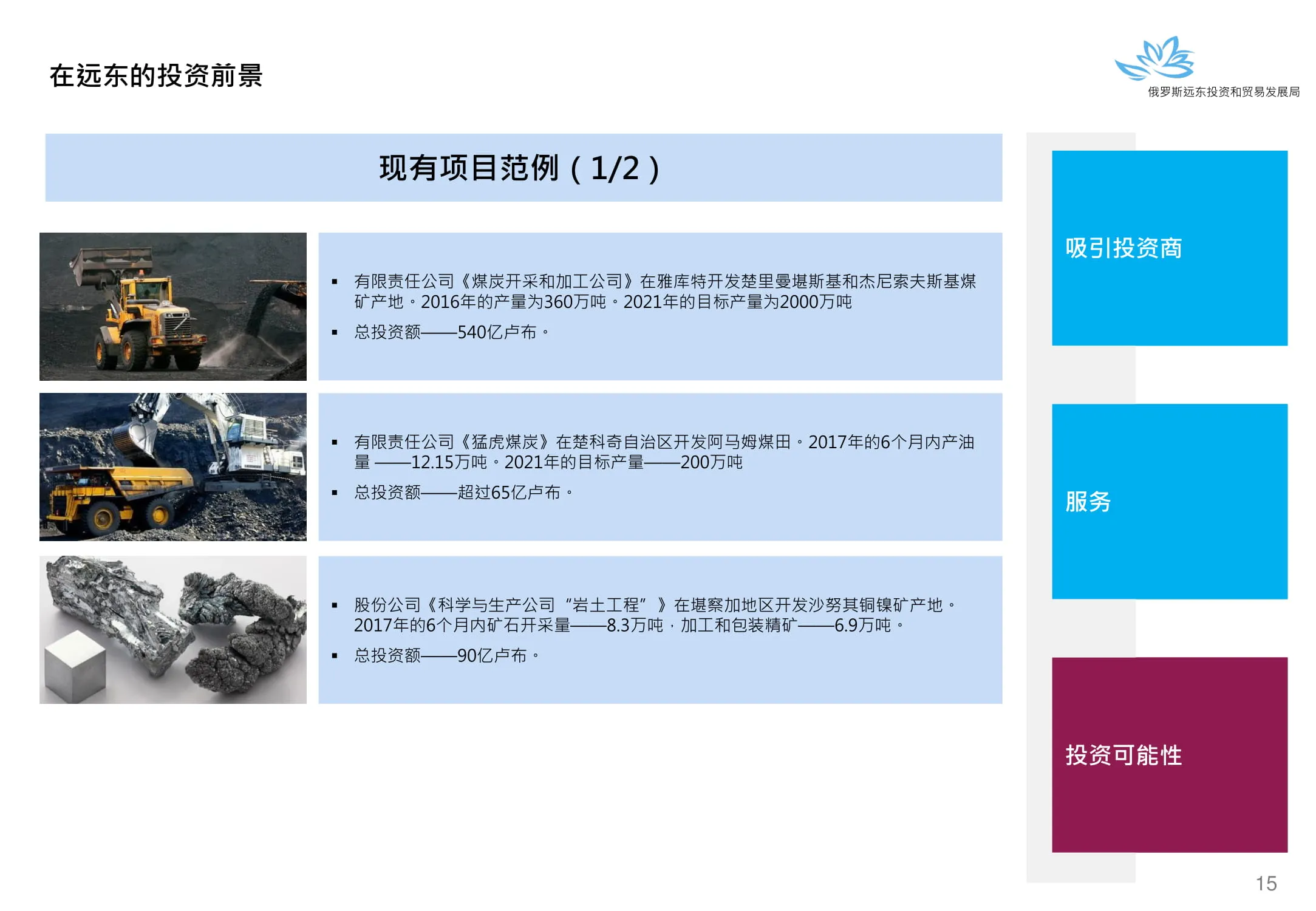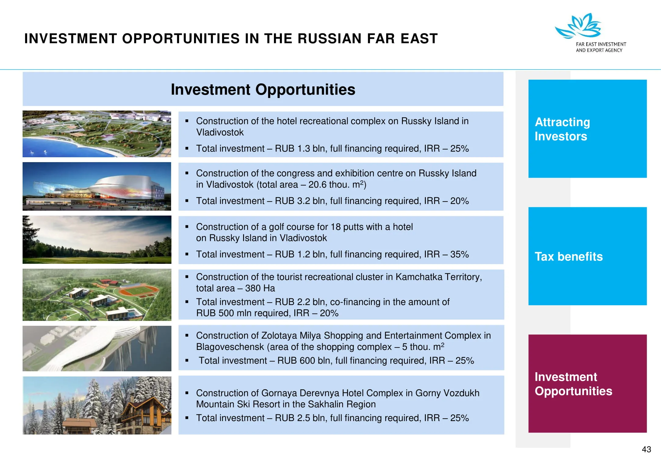 Инвестиции в России Инвестиционный потенциал MO (кит.) Государственное финансирование и инвестиции в сельское хозяйство Подмосковья (кит.) Инвестиционные возможности на Дальнем Востоке (рус.) Инвестиционные возможности на Дальнем Востоке (анг.) Инвестиционные возможности на Дальнем Востоке (кит.)