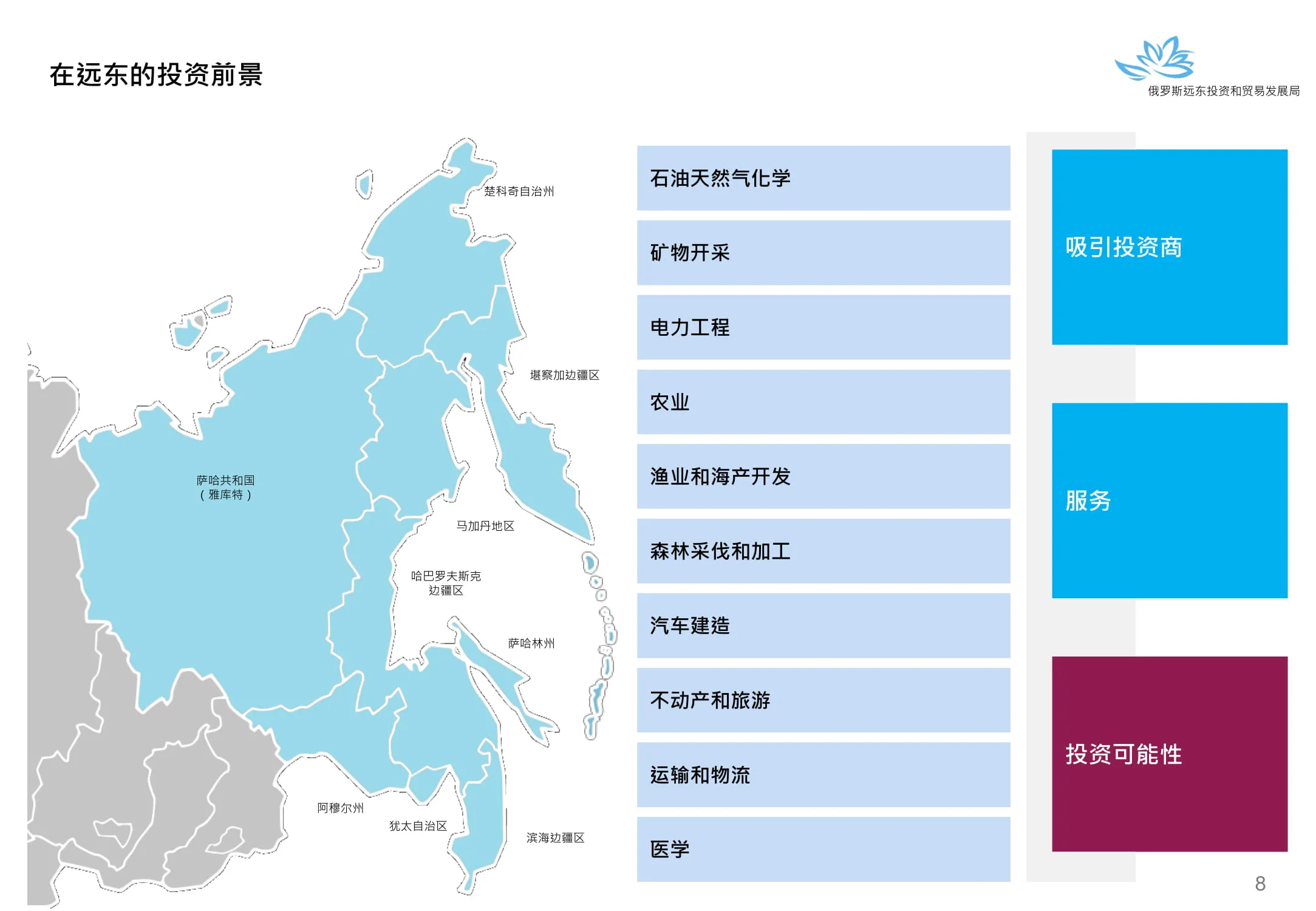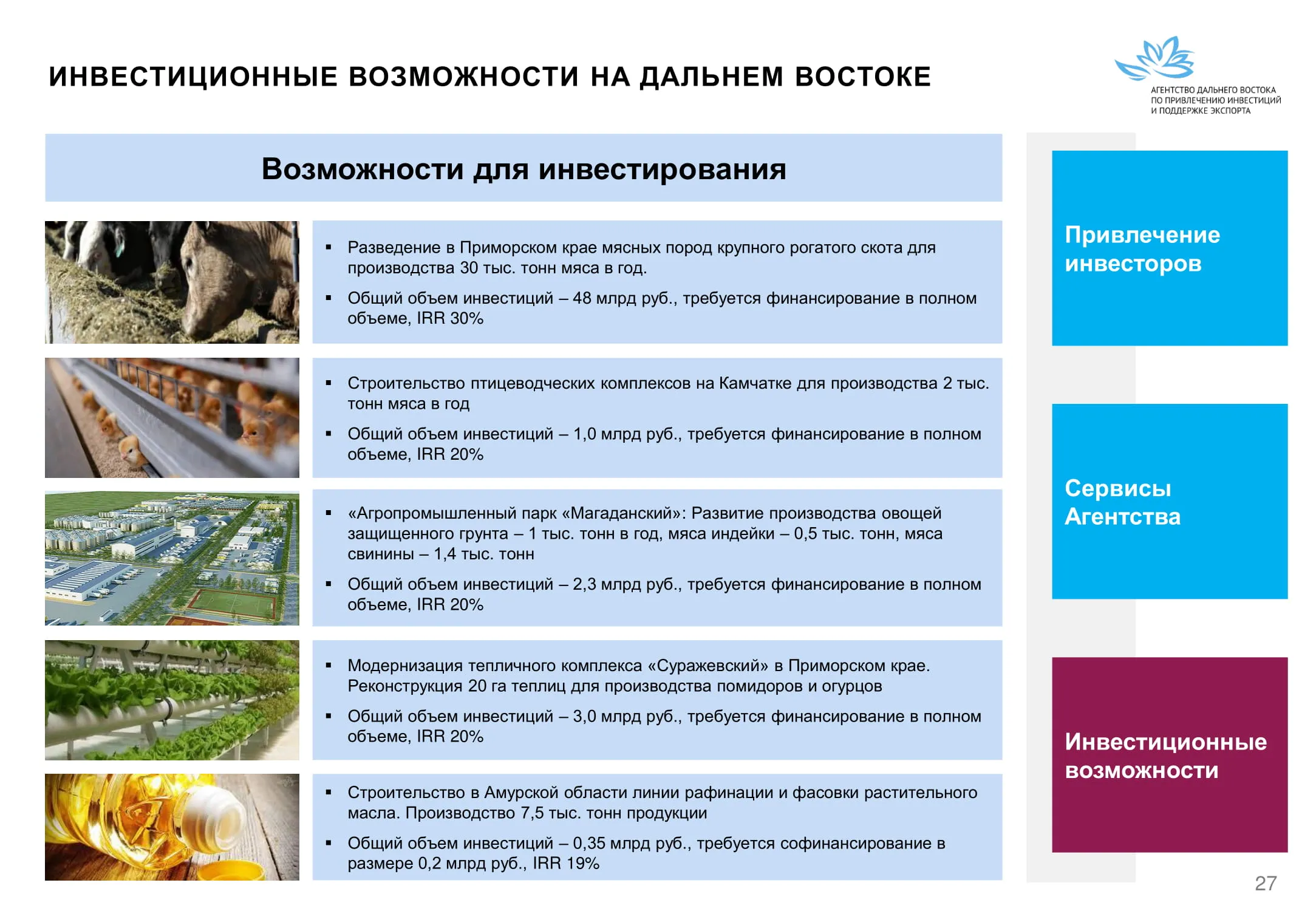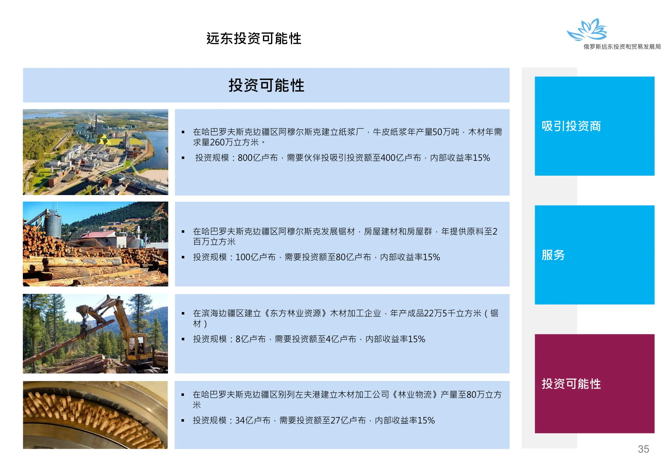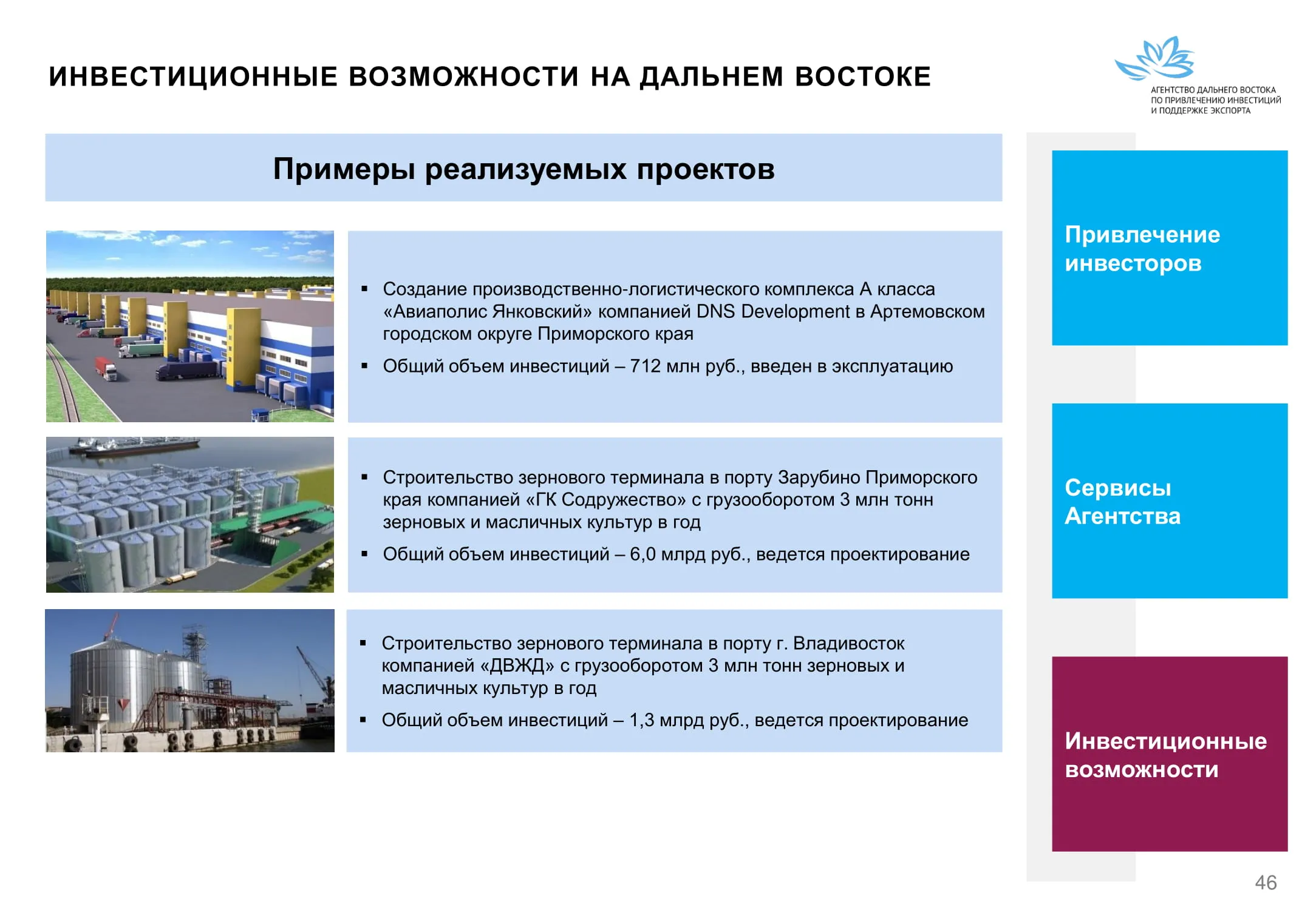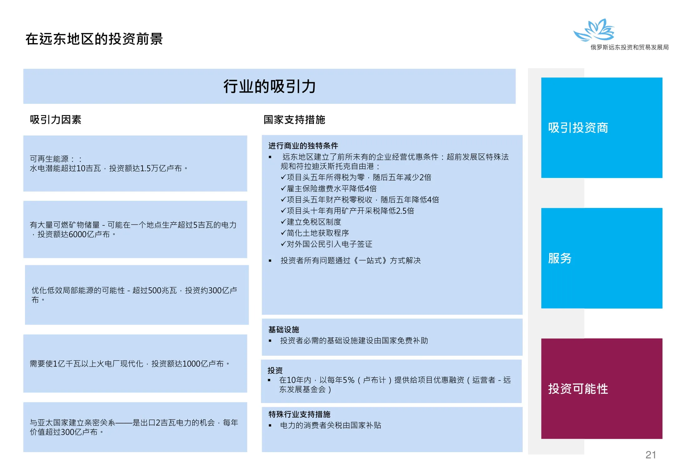 Инвестиции в России Инвестиционный потенциал MO (кит.) Государственное финансирование и инвестиции в сельское хозяйство Подмосковья (кит.) Инвестиционные возможности на Дальнем Востоке (рус.) Инвестиционные возможности на Дальнем Востоке (анг.) Инвестиционные возможности на Дальнем Востоке (кит.)