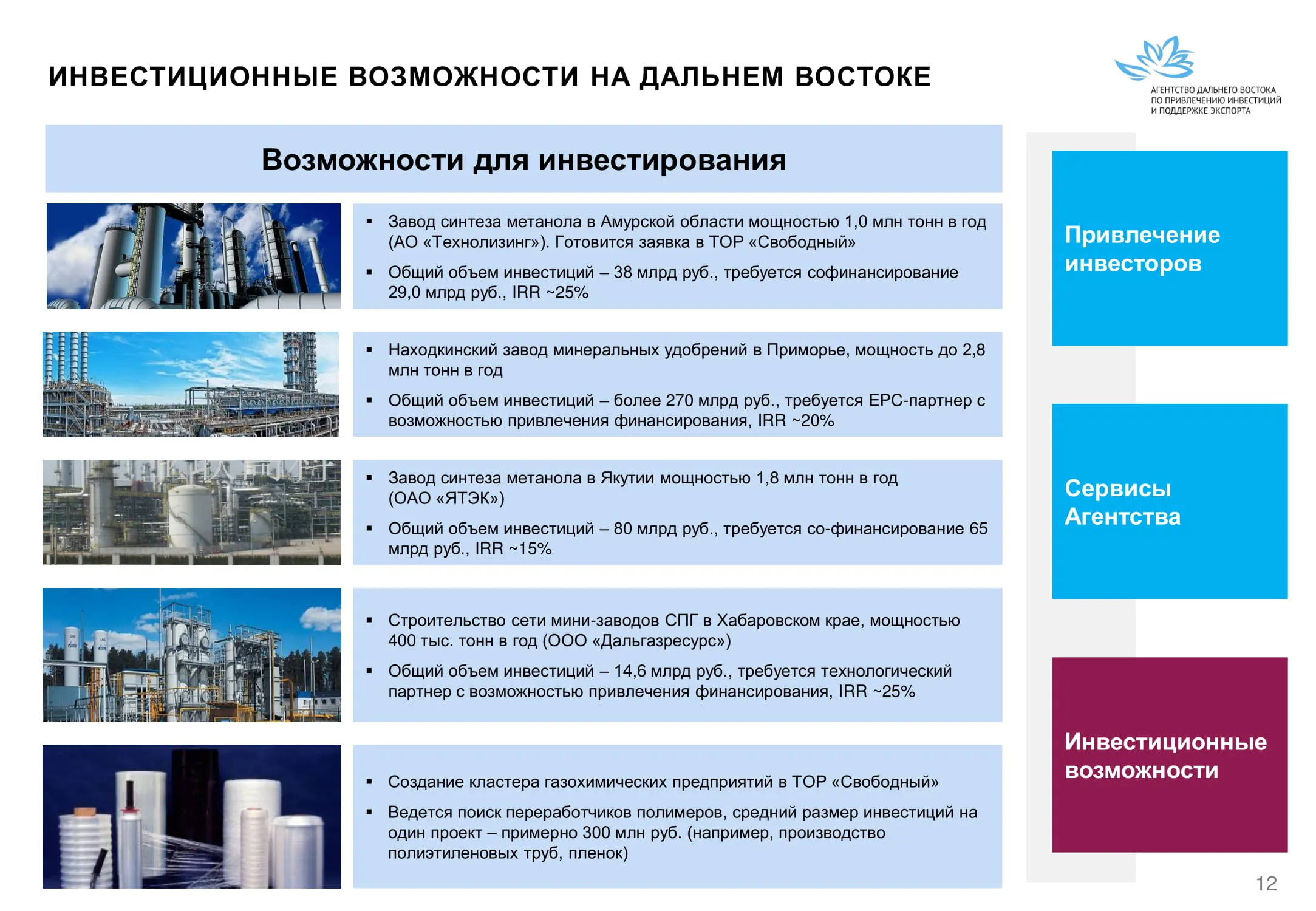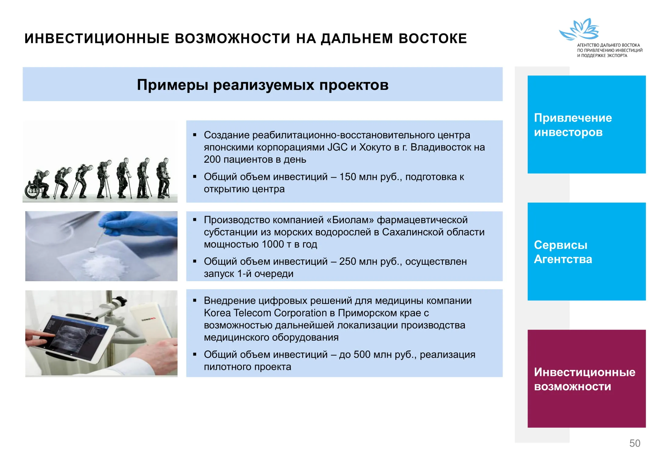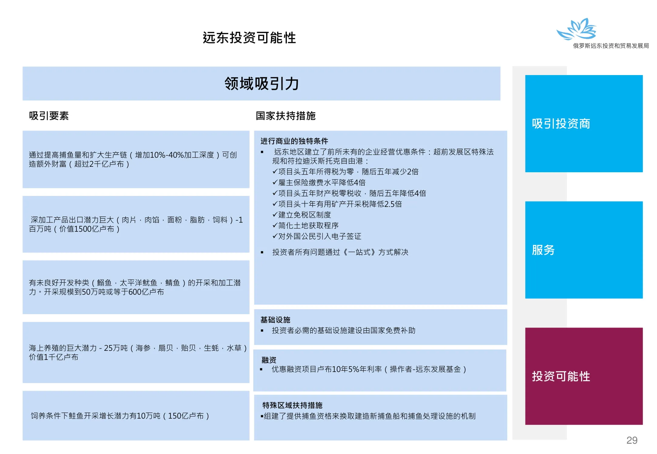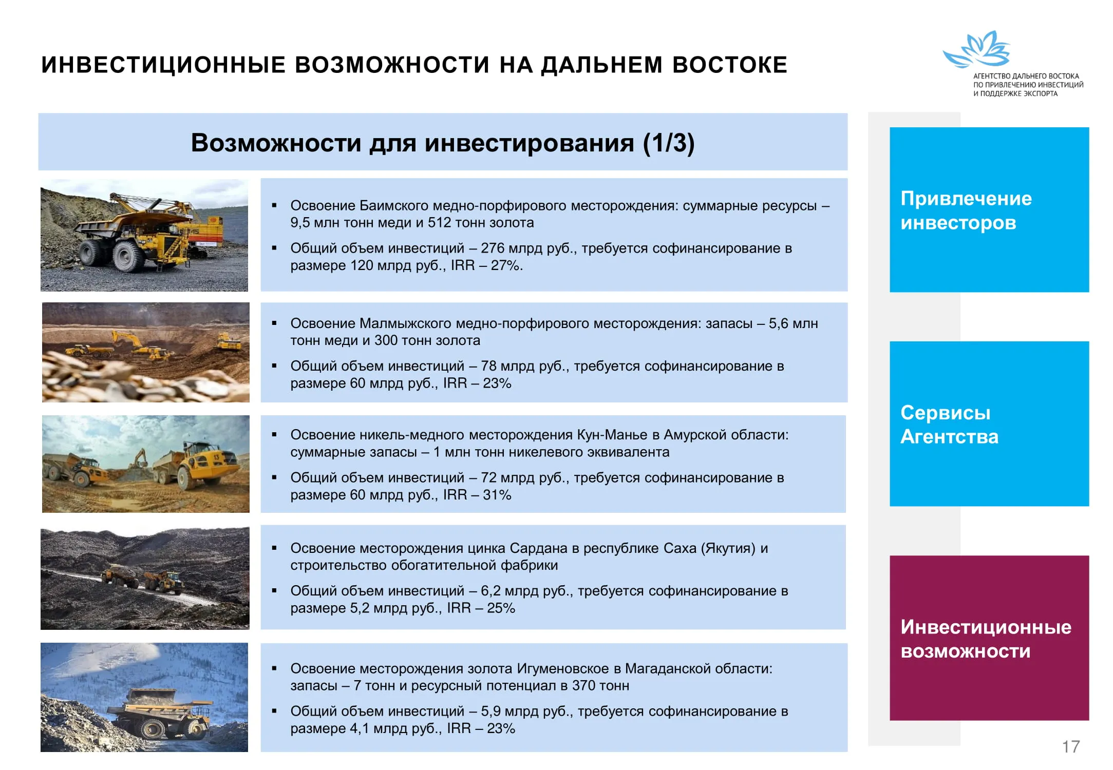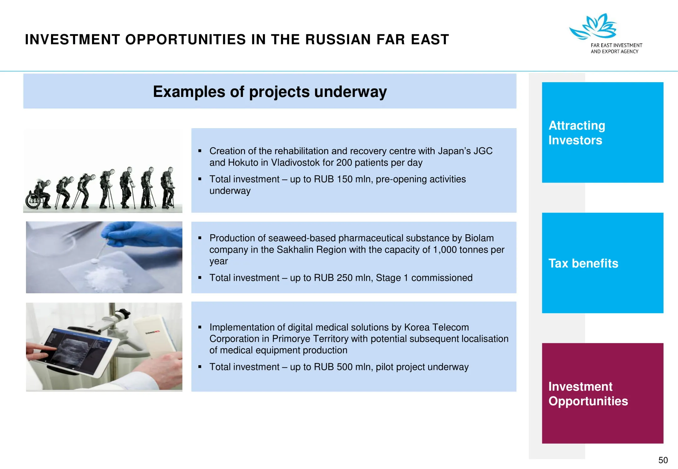Инвестиции в России Инвестиционный потенциал MO (кит.) Государственное финансирование и инвестиции в сельское хозяйство Подмосковья (кит.) Инвестиционные возможности на Дальнем Востоке (рус.) Инвестиционные возможности на Дальнем Востоке (анг.) Инвестиционные возможности на Дальнем Востоке (кит.)