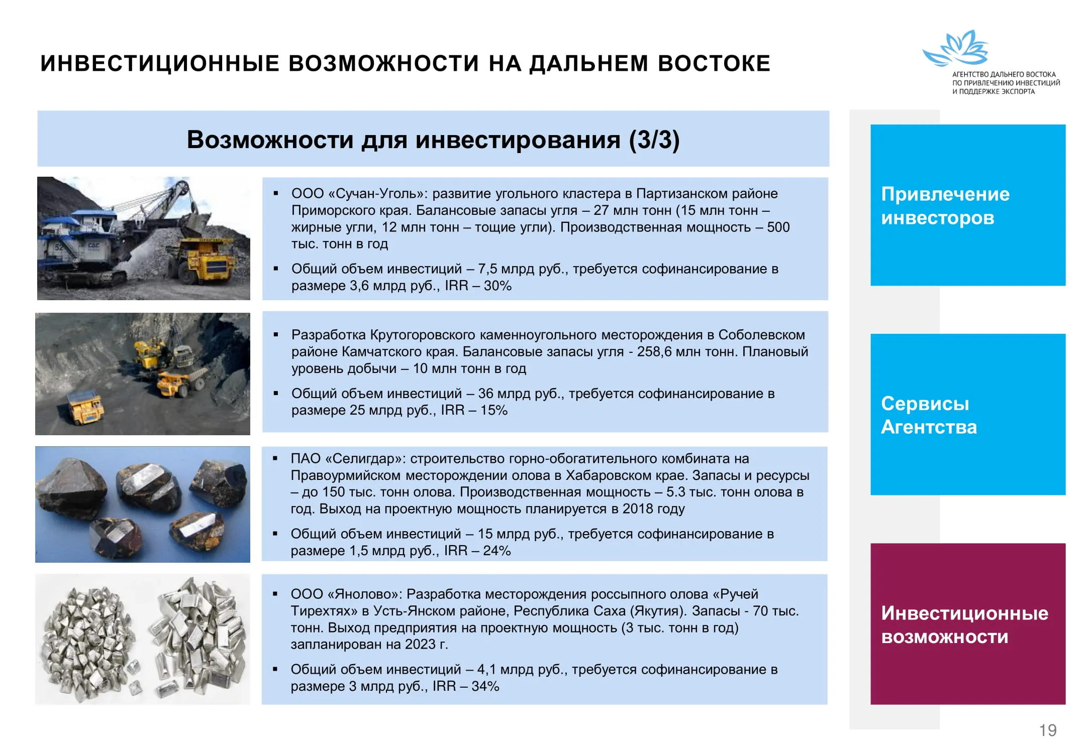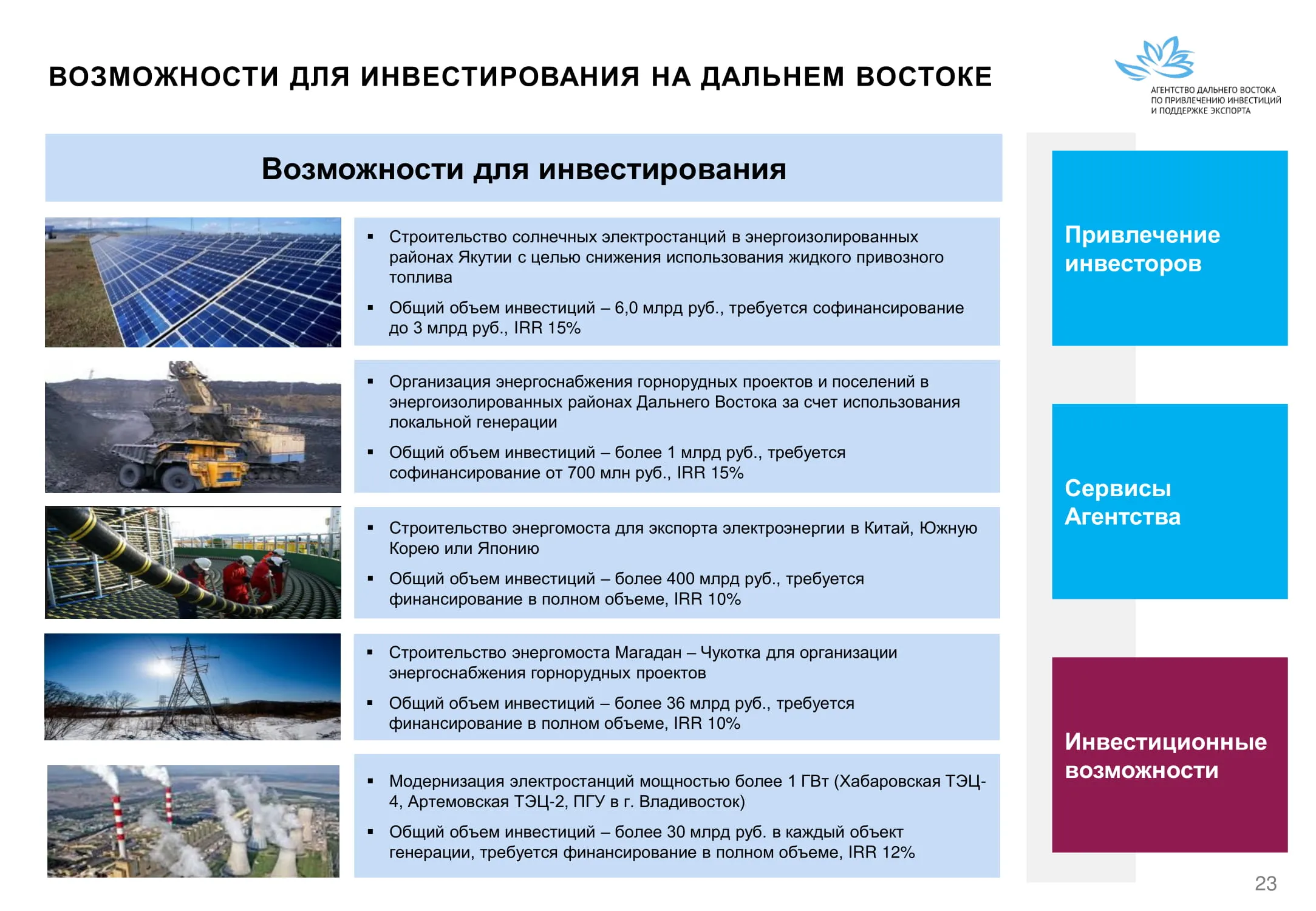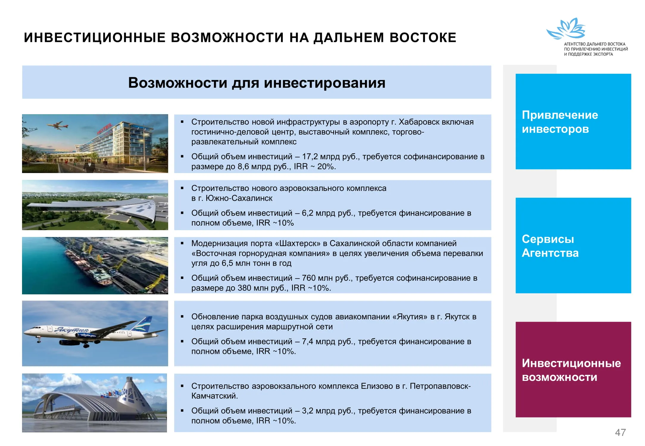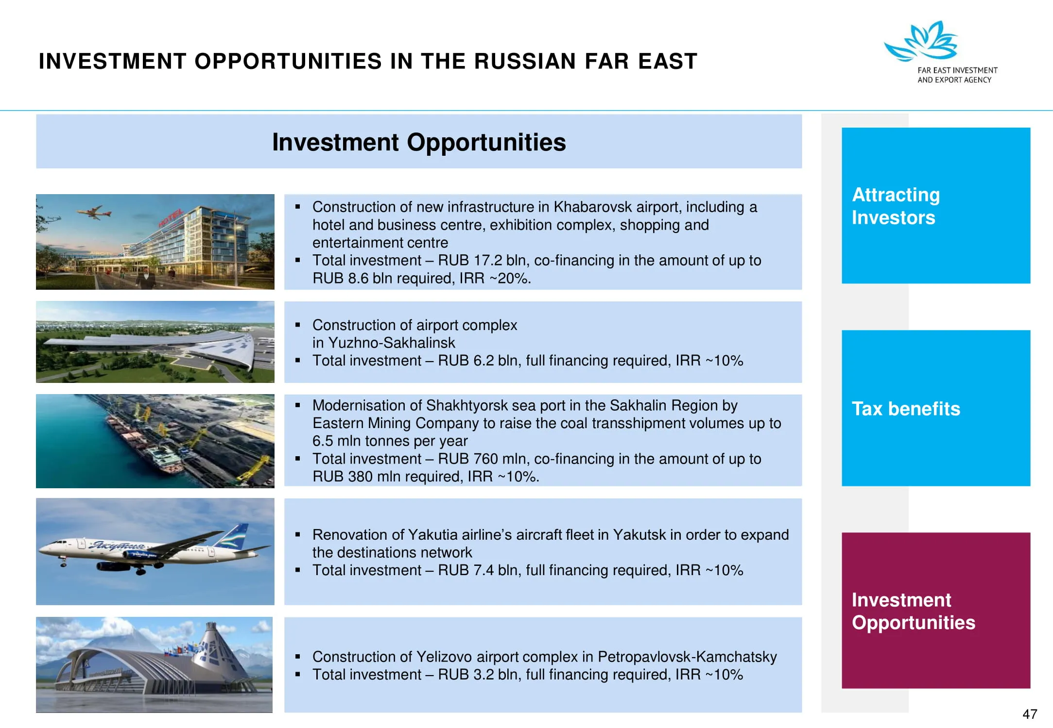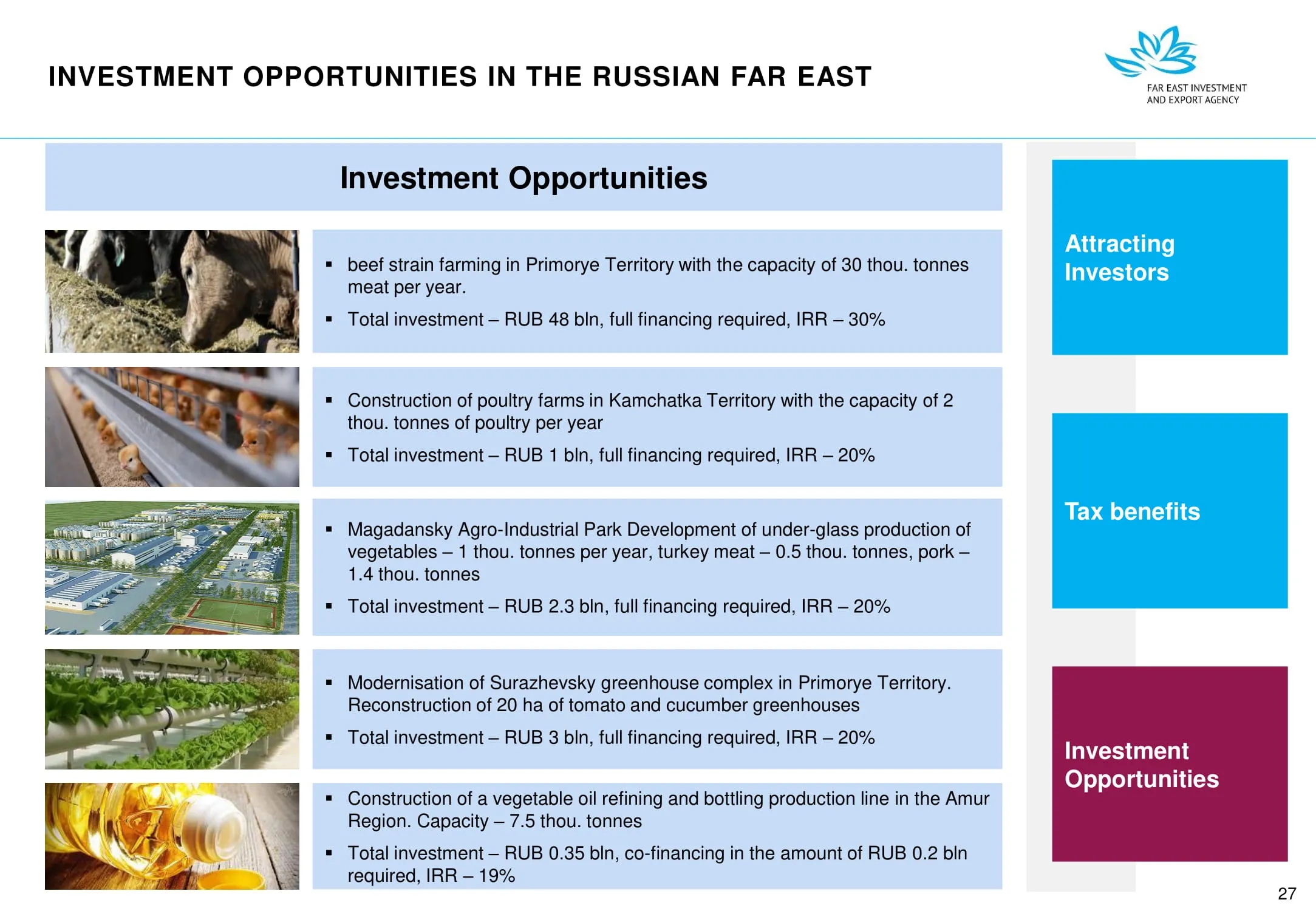 Инвестиции в России Инвестиционный потенциал MO (кит.) Государственное финансирование и инвестиции в сельское хозяйство Подмосковья (кит.) Инвестиционные возможности на Дальнем Востоке (рус.) Инвестиционные возможности на Дальнем Востоке (анг.) Инвестиционные возможности на Дальнем Востоке (кит.)