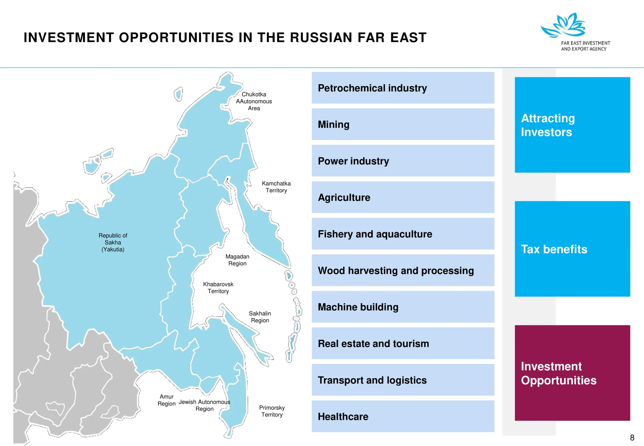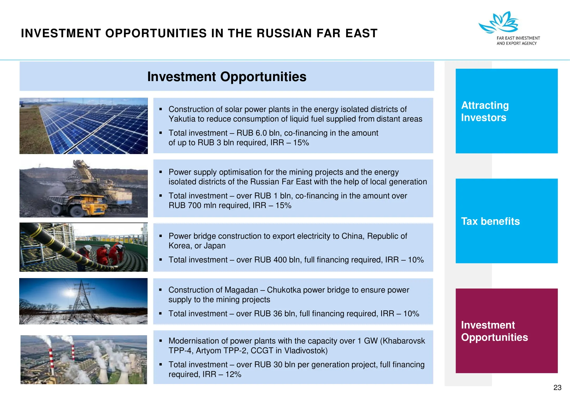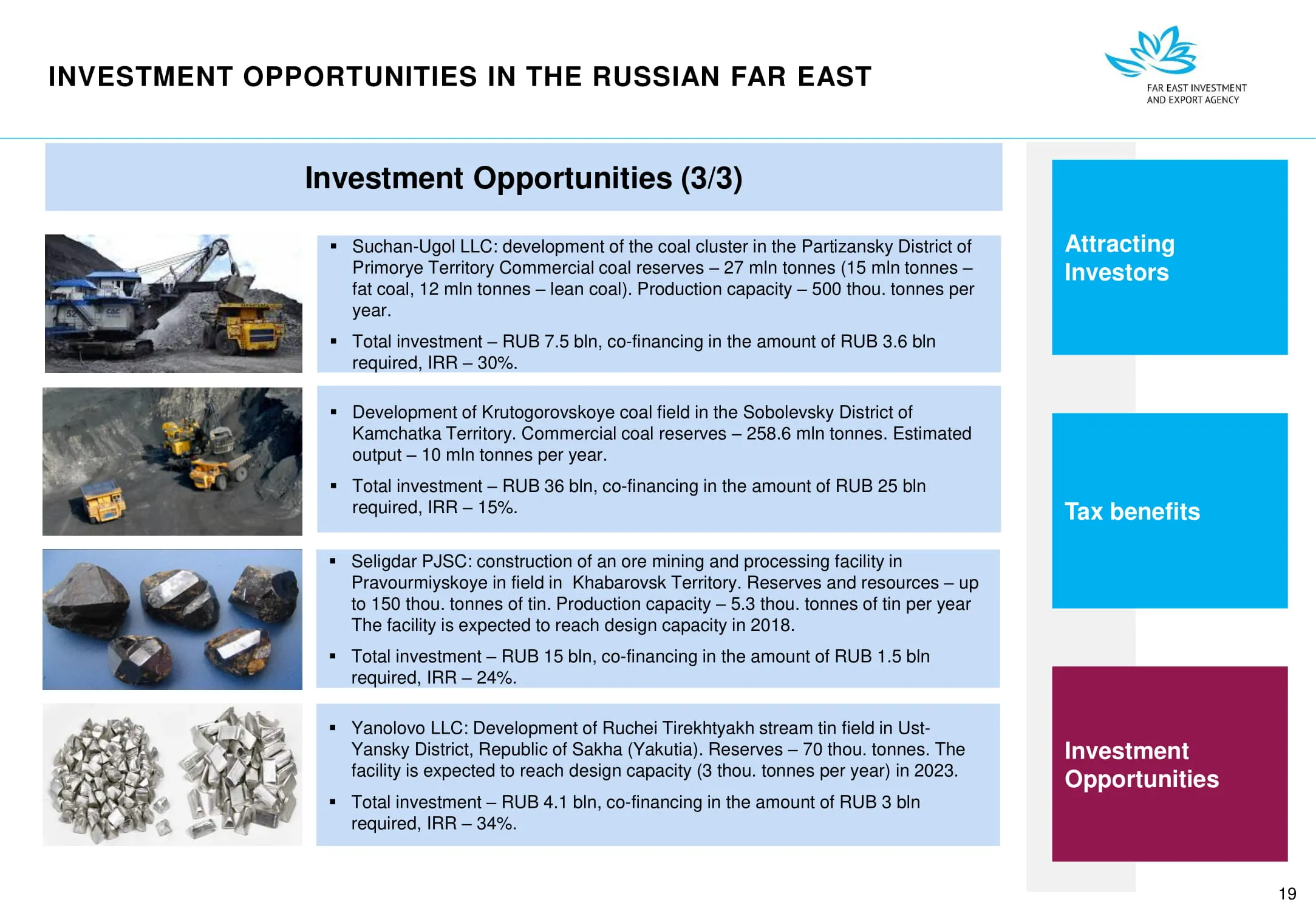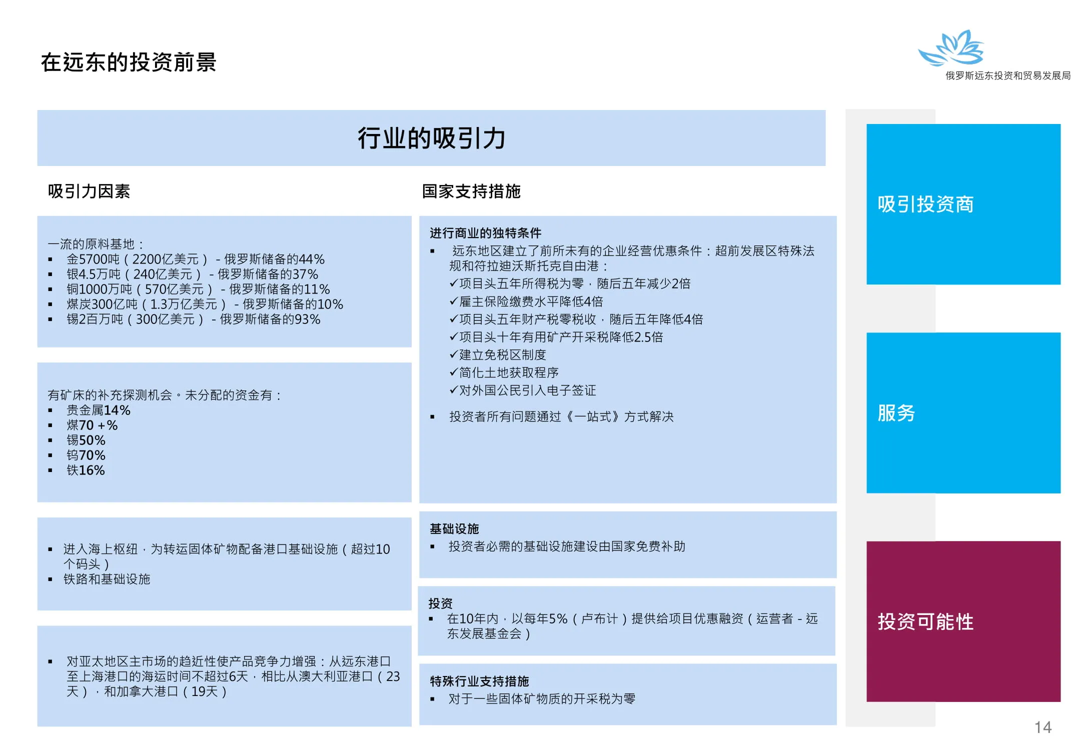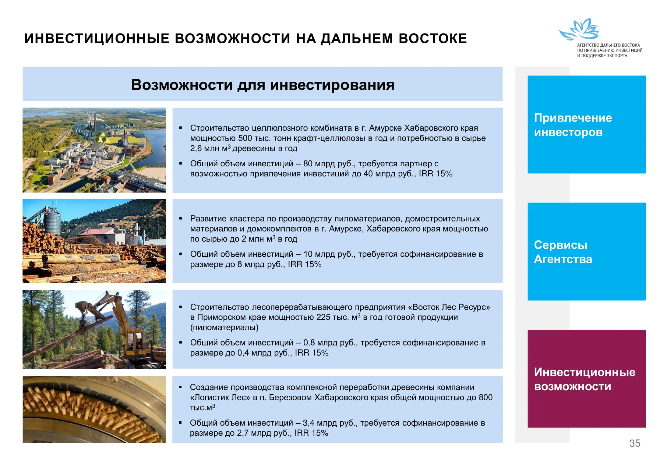Инвестиции в России Инвестиционный потенциал MO (кит.) Государственное финансирование и инвестиции в сельское хозяйство Подмосковья (кит.) Инвестиционные возможности на Дальнем Востоке (рус.) Инвестиционные возможности на Дальнем Востоке (анг.) Инвестиционные возможности на Дальнем Востоке (кит.)