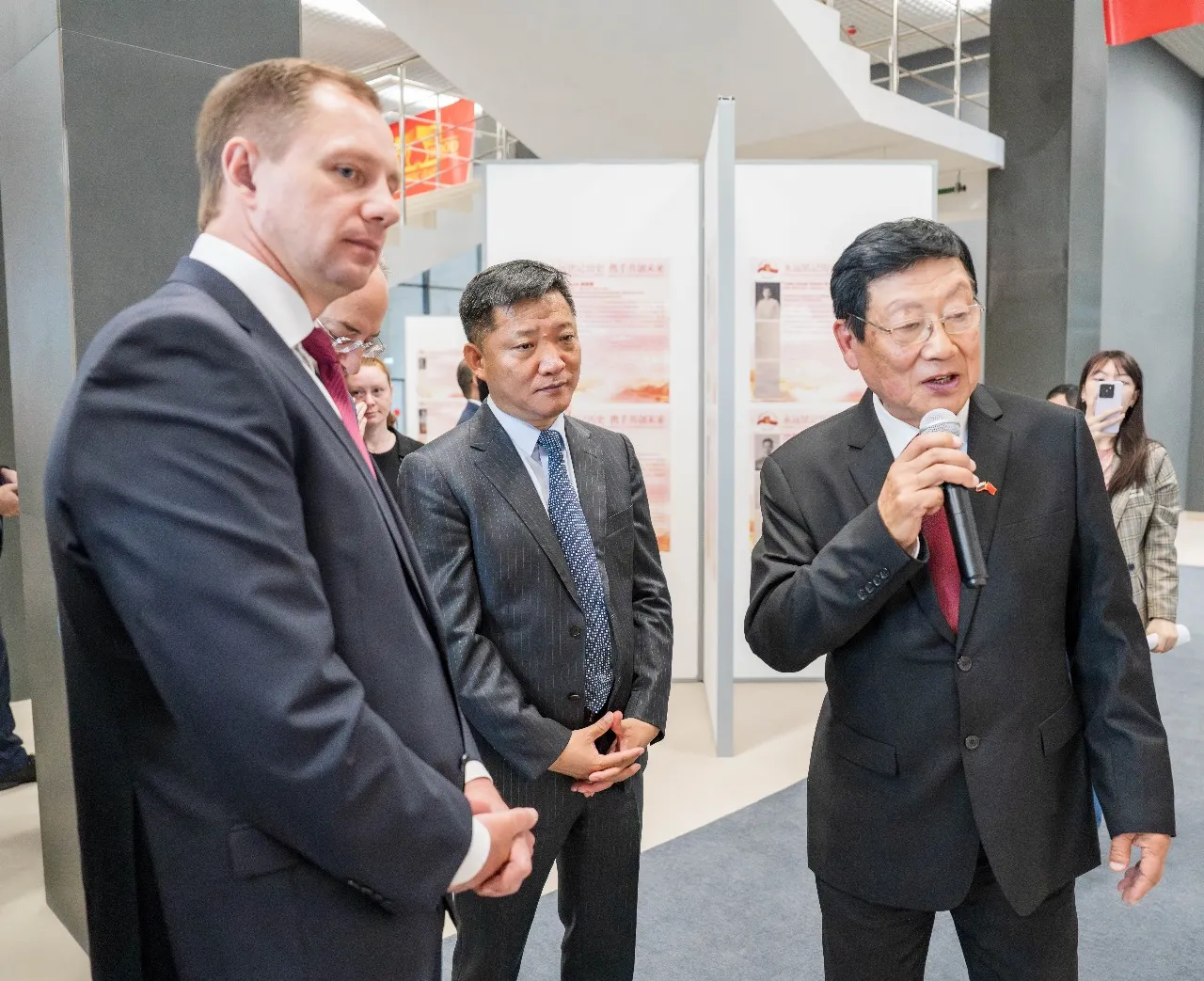 От имени Посольства Китайской Народной Республики в Российской Федерации с открытием экспозиции участников поздравил Полномочный министр Посольства Лю Цзюнь. В своем выступлении он акцентировал незыблемость и стратегический характер российско-китайских отношений всеобъемлющего партнерства и стратегического взаимодействия, подчеркнув взаимную поддержку государств на международной арене. Господин Лю Цзюнь указал на ключевую роль двух стран в защите международного правопорядка и продвижении принципов многополярного мироустройства.